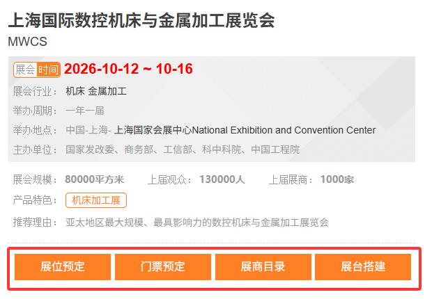 上海国际数控机床与金属加工展览会MWCS【展位预定、门票预定、展商目录、展台搭建、差旅行程、签证、翻译、物流运输、补贴申报】