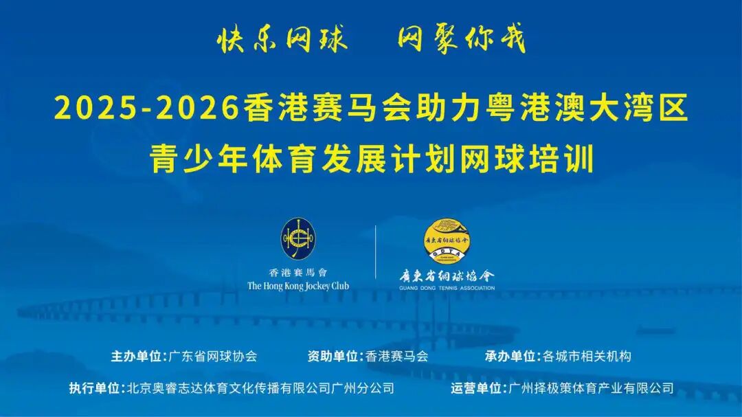 由广东省网球协会主办,香港赛马会资助,广州择极策体育产业有限公司运营,北京奥睿志达体育文化传播有限公司广州分公司执行的2025-2026香港赛马会助力粤港澳大湾区青少年发展计划网球培训即将拉开帷幕。本培训活动致力于青少年网球运动的推广与发展,以快乐网球,网聚你我”为核心主题,旨在通过一系列精心策划的公益活动,为青少年儿童打开网球世界的大门。