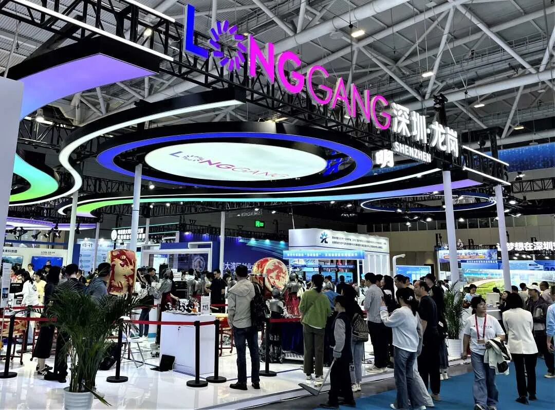 展台还设置了 "龙岗创新故事展区,通过图文和视频展示龙岗区的创新发展历程,让观众了解龙岗从传统工业区向创新高地转型的文化内涵。