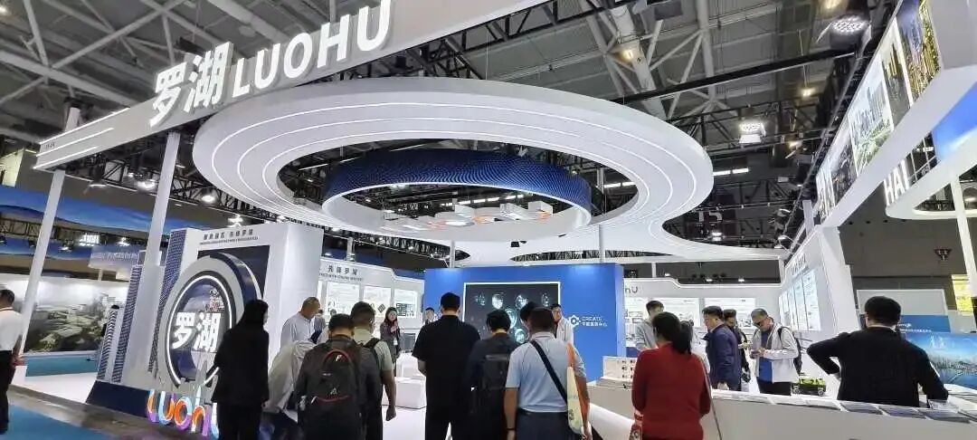 罗湖区展台面积达 270 平方米,采用开放式设计理念。展台分区清晰、功能明确,涵盖三大核心区域:成果展示区借助多块高清显示屏,生动呈现罗湖城市风貌与产业发展成就;互动洽谈区配备舒适桌椅,为商务沟通与合作洽谈提供优质空间;品牌形象区设置立体 "罗湖标识,强化观众记忆点。