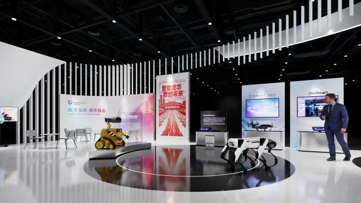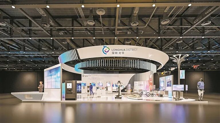 这种文化元素的运用不仅增强了展台的文化内涵,更展现了龙华区在文化传承与科技创新融合方面的独特优势,让 "科技有温度从理念变为现实。