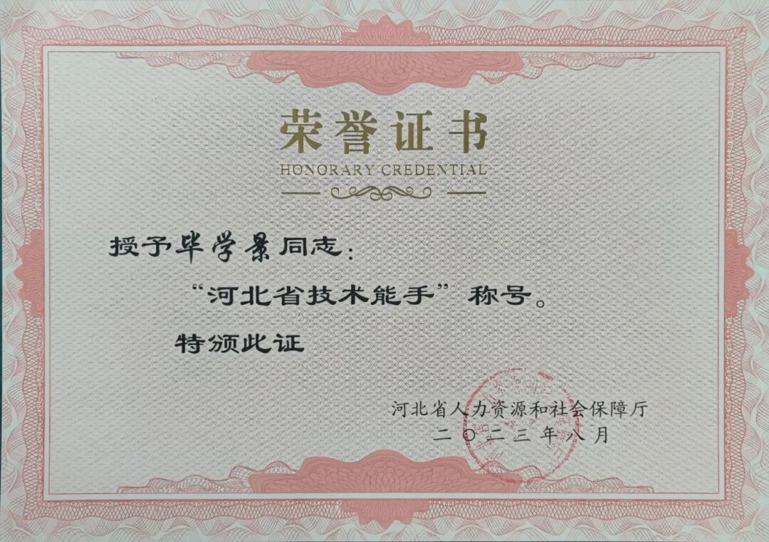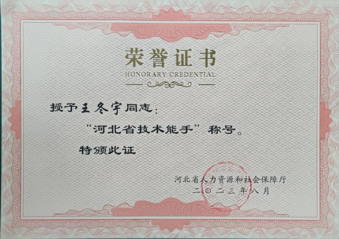 张艳征,全国技术能手、新时代青年先锋奖、河北省突出贡献技师、河北省五一劳动奖章获得者,高级技师。2019年毕业留校任实习辅助教师,在校期间曾多次代表学院参加、省级、国家级技能大赛,其中获得全国职业院校技能大赛国赛一等奖、中国技能大赛国赛一等奖等23项技能大赛荣誉,并在2019年获得河北省“五一劳动奖章”。