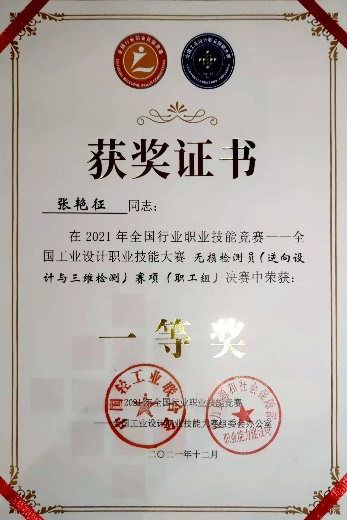 参加“2021年全国行业职业技能竞赛——全国工业设计职业技能大赛”获一等奖