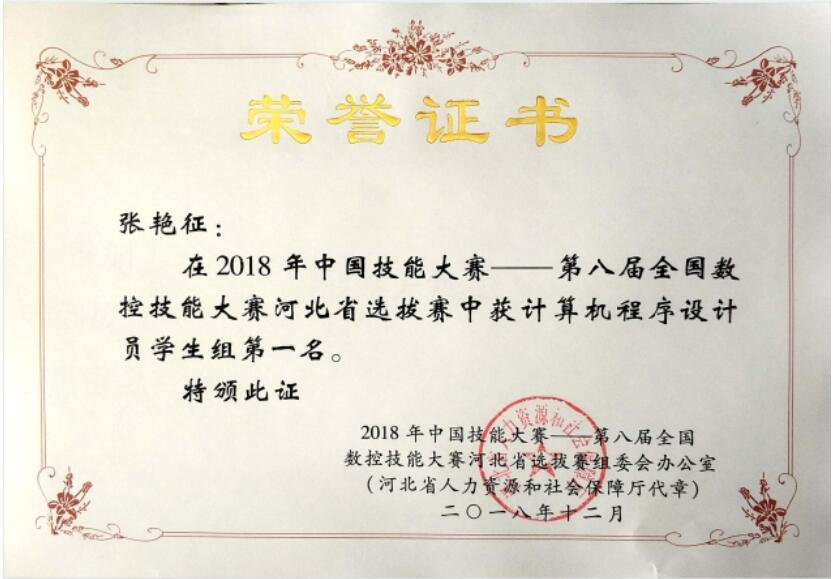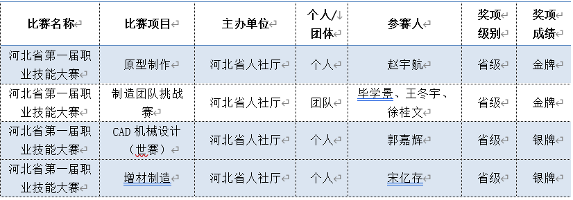 河北省第一届职业技能大赛学生荣获金银牌情况