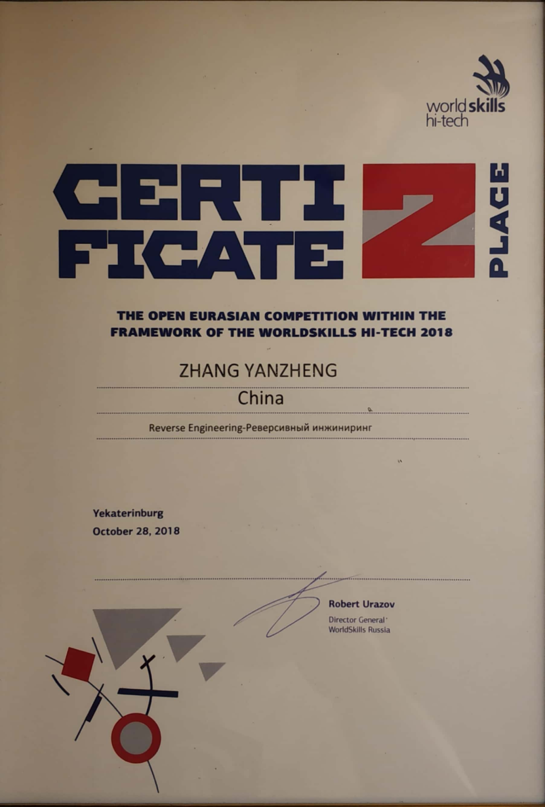 学生获欧亚世界技能高科技公开赛逆向工程赛项获银牌