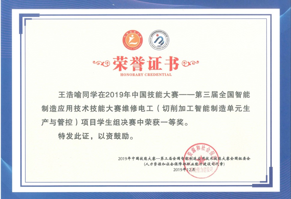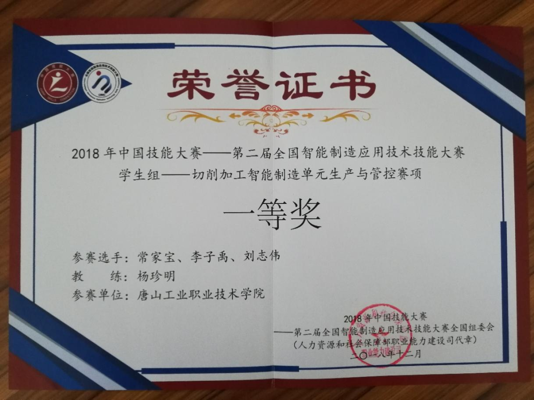 荣获第二届全国智能制造应用技术技能大赛一等奖