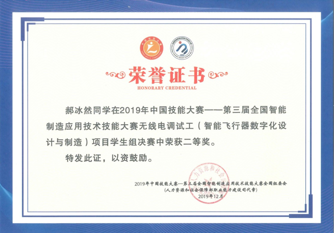 第三届全国智能制造应用技术技能大赛——智能飞行器数字化设计与制造团体二等奖