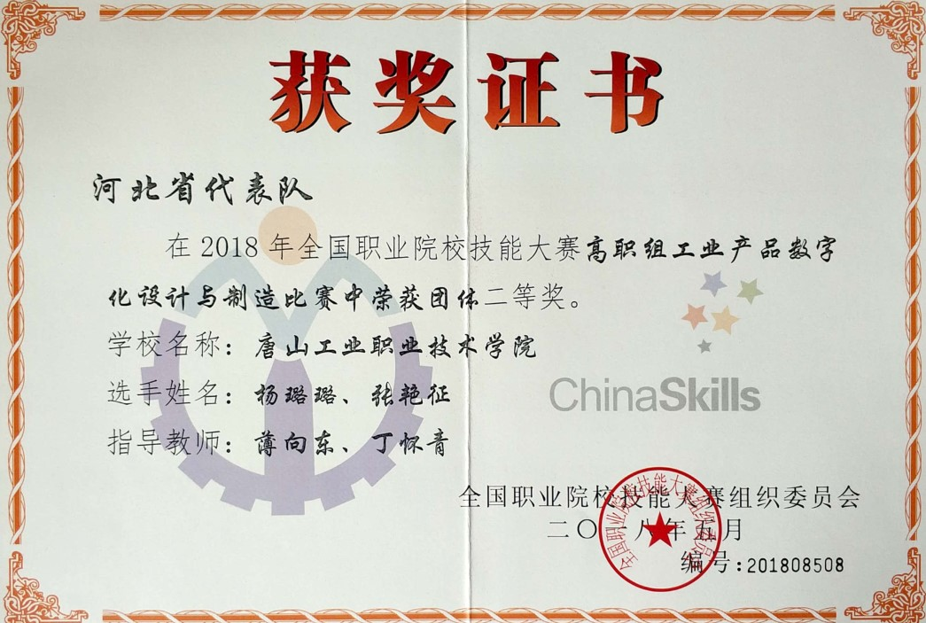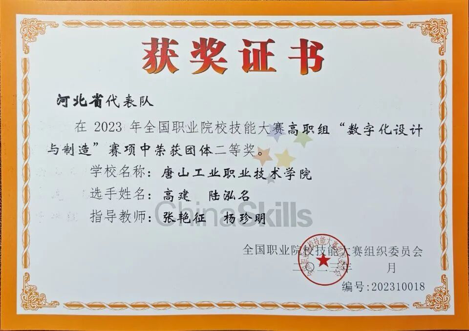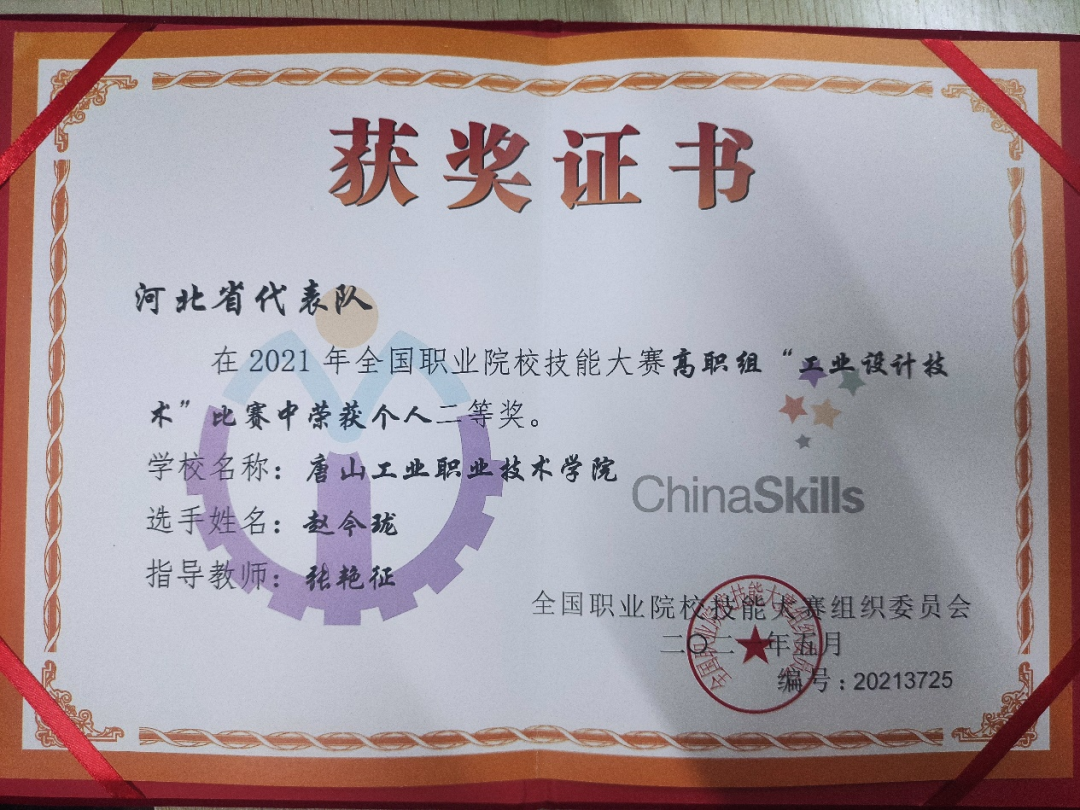 全国职业院校技能大赛工业产品数字化设计与制造二等奖