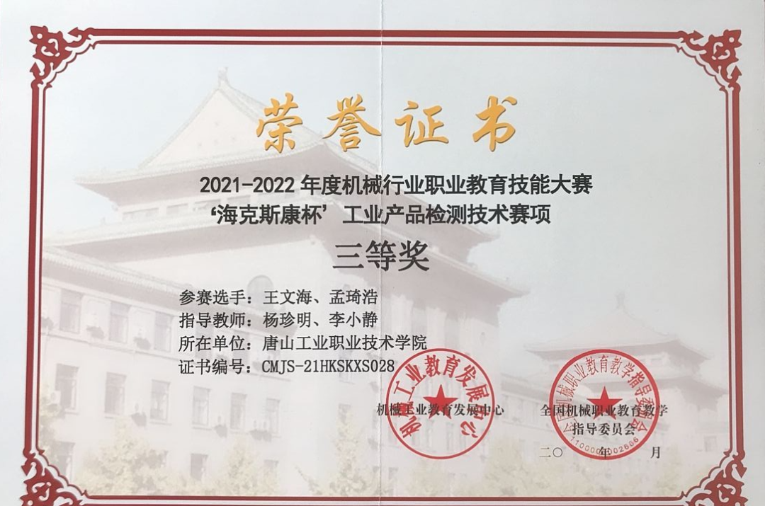 2021-2022年度机械行业职业教育技能大赛三等奖
