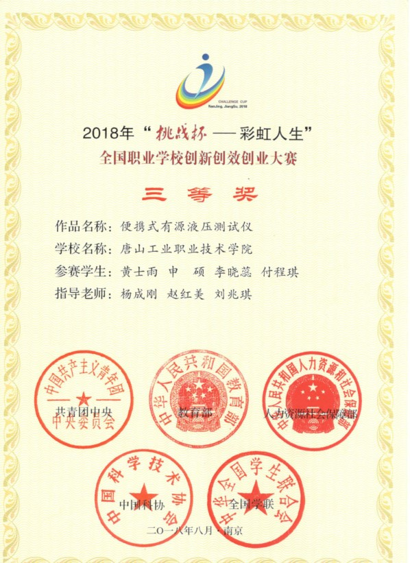 挑战杯——彩虹人生”全国职业学校创新创效创业大赛三等奖