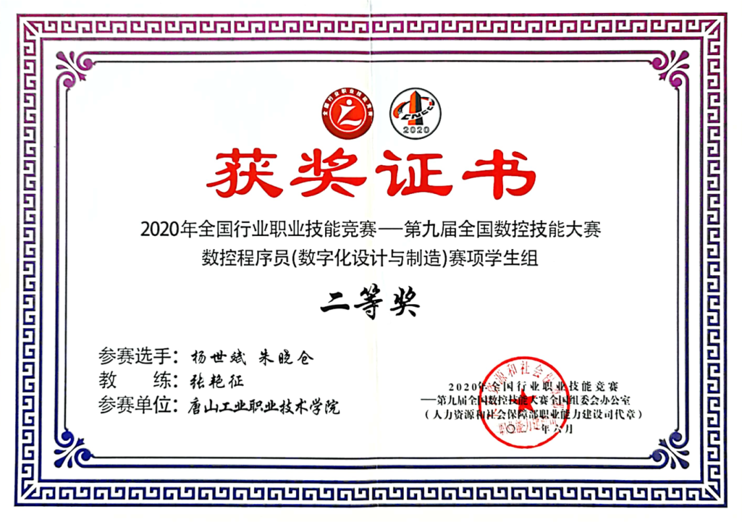 学生参加第九届全国数控大赛数控程序员赛项获国家二等奖