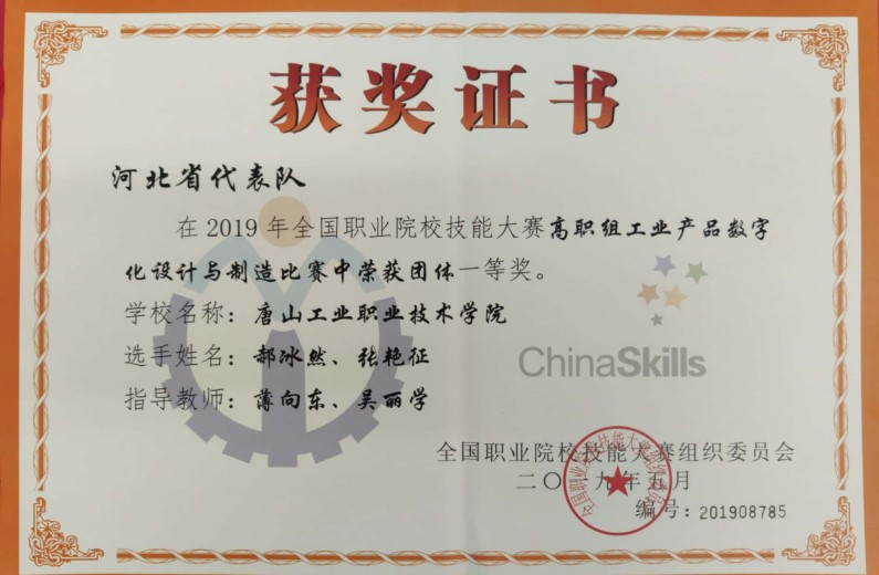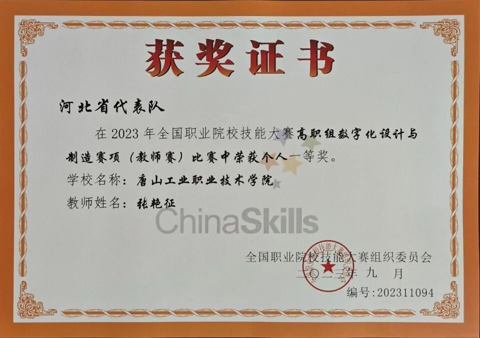 教学团队彰显高水平。拥有“博士+教授+高工+技能大师”领衔的高水平教学团队。2025年学院教师参与的项目获河北省教学成果特等奖、二等奖各1项,机械制造及自动化专业教师团队入选“河北省高校黄大年式教师团队”,多名教师受邀担任国家、省级赛事裁判、裁判长。传承“精益求精、追求卓越”的工匠精神,建立了杨珍明市级技能大师工作室和职工创新工作室、薄向东市级技能大师工作室和职工创新工作室,立项河北省创新行动计划增减材技术技能大师工作室建设项目、河北省职业教育技艺技能传承创新平台,领军人才带徒传艺,师生多次参加国家、省技能大赛获佳绩,涌现了国务院政府特殊津贴专家、全国五一劳动奖章获得者、全国技术能手、省“五一劳动奖章”获得者、省突出贡献技师、省技术能手、省师德标兵、省三三三人才、市十佳教师、市职教名师等。张艳征荣获2023年全国职业院校技能大赛数字化设计与制造赛项一等奖、2021年全国行业职业技能竞赛——全国工业设计职业技能大赛一等奖,获“全国技术能手”荣誉称号。