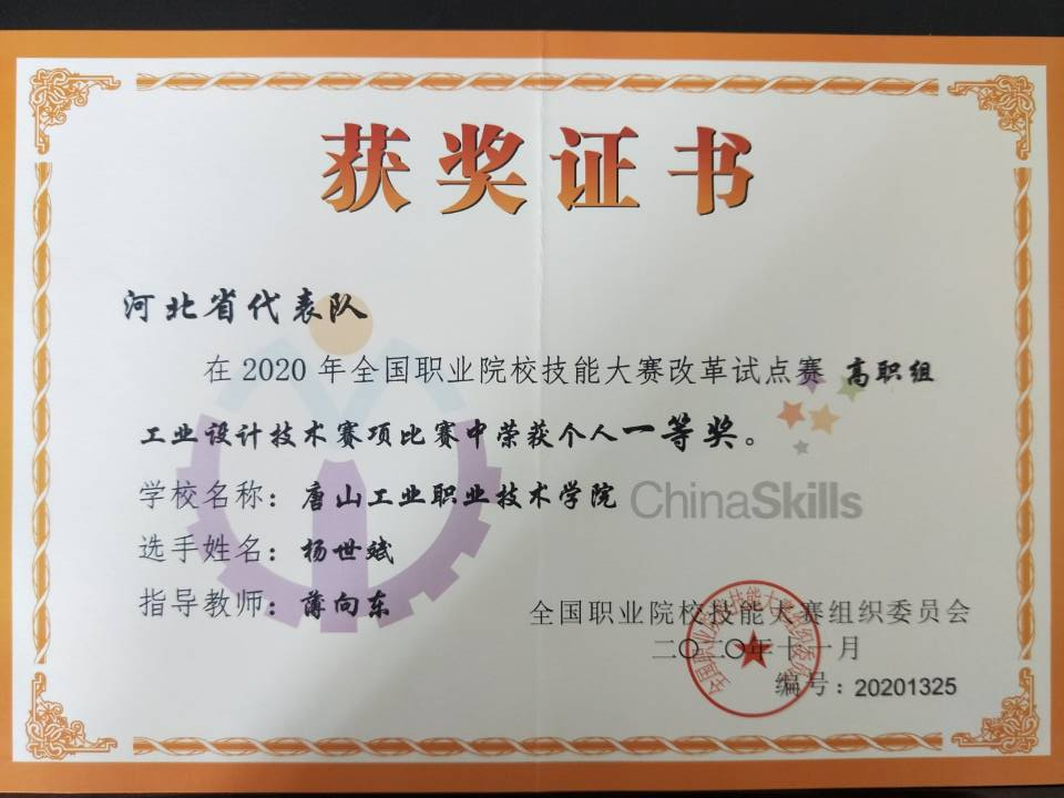 荣获2020全国职业院校技能大赛改革试点赛工业设计技术赛项一等奖