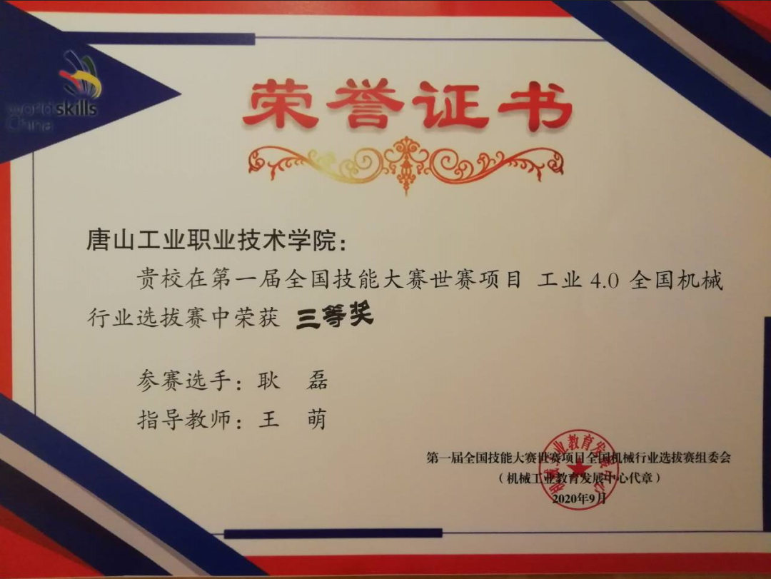 第一届全国技能大赛世赛项目工业4.0全国机械行业选拔赛三等奖