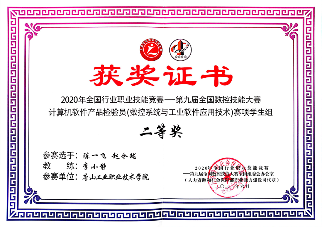 学生参加第九届全国数控大赛计算机软件产品检验员赛项获国家二等奖