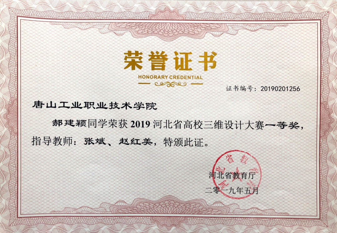 学生荣获2019年河北省高校三维设计大赛一等奖