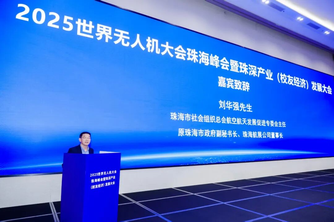 珠海市社会组织总会航空航天发展促进专委会主任、原珠海市政府副秘书长、珠海航展公司董事长、珠海市巴蜀文化研究会名誉会长刘华强在致辞中用"聚力器、催化器、扬声器"三个形象的比喻,高度概括了峰会对珠海低空经济发展的战略意义,点明了峰会对珠海汇聚全球产业资源、加速应用场景落地、提升全球影响力的重要价值。他指出:"珠海作为中国航展的'双航展之城',拥有独特的平台优势。世界无人机峰会这一国际性舞台,让全球目光再次聚焦珠海。这不仅能吸引更多优质企业落户,更是向世界展示珠海在低空空域管理、产业政策创新等方面'先行先试'成果的绝佳机会。低空经济是一片广阔的蓝海,其发展离不开市场、空域、技术、安全等方面的协同创新,期待以本次峰会为纽带,凝聚全球同仁们共同攻克技术难关,共建安全、高效繁荣的低空生态,驱动珠海这座低空之城飞得更高更稳更远。"阐述了峰会对助力珠海低空经济发展的重要意义,他表示珠海作为粤港澳大湾区重要节点城市,在低空经济基础设施、产业生态等方面具备独特优势,期待通过本次大会深化与深圳的产业协同,共同抢占低空经济发展制高点。