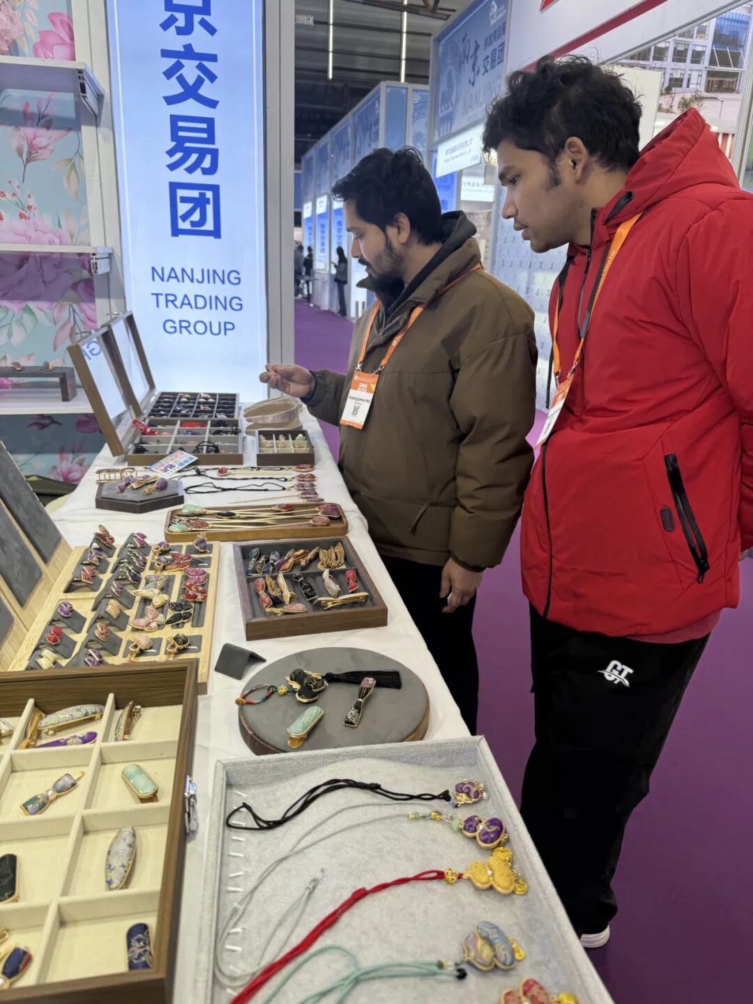 一位外国友人在展台前久久驻足,不仅当场预订了多件马年挂件,还购买了数米宋锦布料,表示要作为最特别的礼物带回国送给亲友。他通过翻译告诉南京江北新区残疾人就业创业协会负责人杨琳琳:“这是世界上独一无二的礼物。”