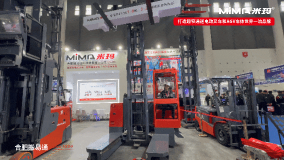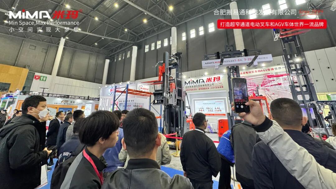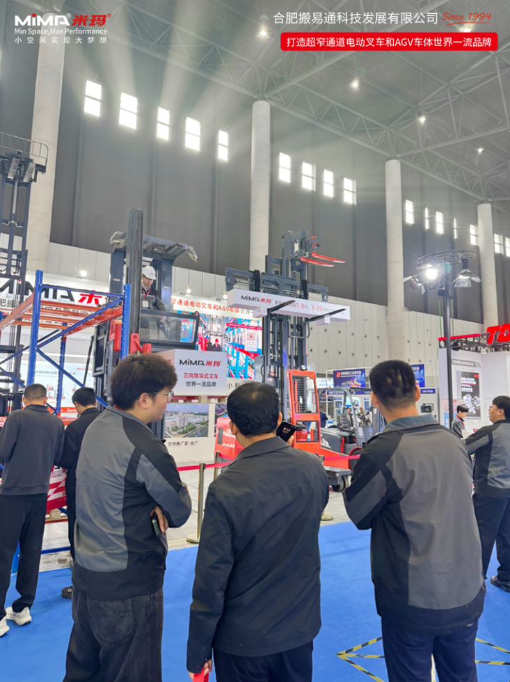 本次展会,合肥搬易通(MiMA米玛)展示多款明星产品,包括MCC16人上型三向车、MC16站驾人下型三向车、MQC30宽体坐驾全向叉车、MK20X平衡重式叉车、MFZ20前移式叉车、MBV15平衡重式堆垛车AGV车体、MEV20S托盘搬运车AGV车体,MiMA展位人气爆棚,获得了众多参观者的关注。