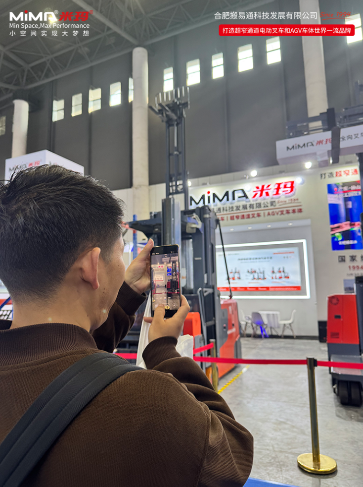 MiMA米玛窄巷道叉车凭借其针对高位仓储拣选、长物料搬运与纵深空间高效利用的专业设计,吸引了众多参观者的关注。该产品能够显著应对土地资源紧张、仓储布局受限、人力成本提升及作业安全风险等行业共性挑战,以其创新设计和实用价值,收获了现场专业人士的广泛好评。
