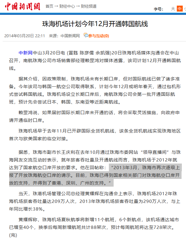 值得关注的是,珠海金湾机场是目前全国唯一一座非国际航空口岸的千万级吞吐量机场,也是民航局划定的区域枢纽机场中唯一未对外开放航空口岸的机场。珠海金湾机场建设初期工程名称为“珠海三灶国际机场”,从规划、设计到施工均对标国际机场标准,但因多种因素,航空口岸一直未能正式对外开放。尽管珠海金湾机场先后通过客运、公务机、航展等临时对外开放方式多次尝试,仍未实现口岸正式开放。其中,2012年客运航班临时对外开放期间已达到申报正式航空口岸的条件,但因始终未能取得澳门方面的书面支持意见,最终未能获批。