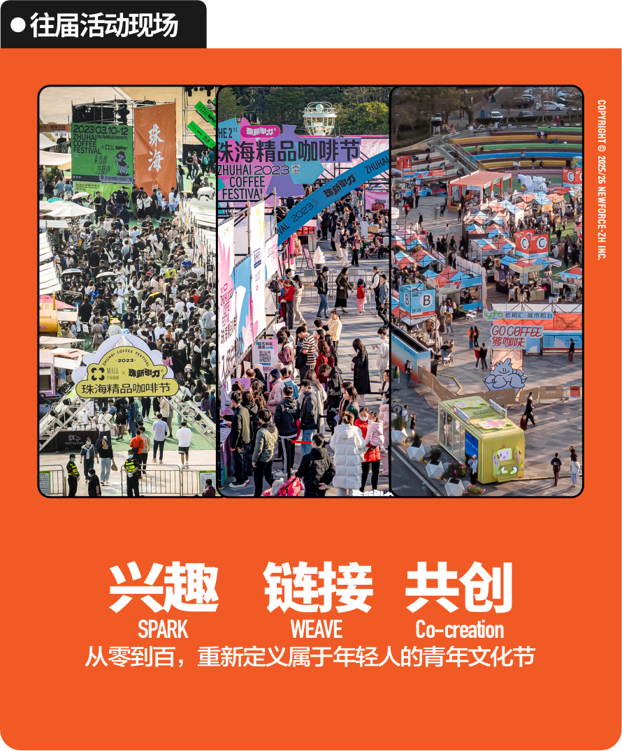 我们已成功策划“珠海露营咖啡节”“珠海精品咖啡节”“珠海烘焙节”等城市级活动,累计吸引300+品牌参与,传播覆盖超300万人次。
