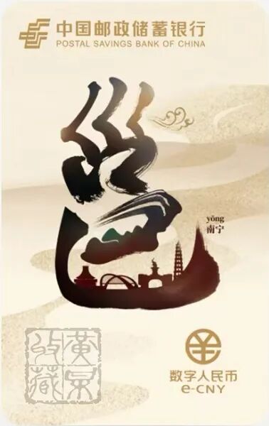 在数字人民币专区,广西专属的数字人民币硬钱包“邕城卡”格外引人注目,卡面以南宁简称“邕”为核心,融入南宁地标建筑与山水元素,地域特色鲜明。该款硬钱包可在博览会现场领取,每人限领1张。