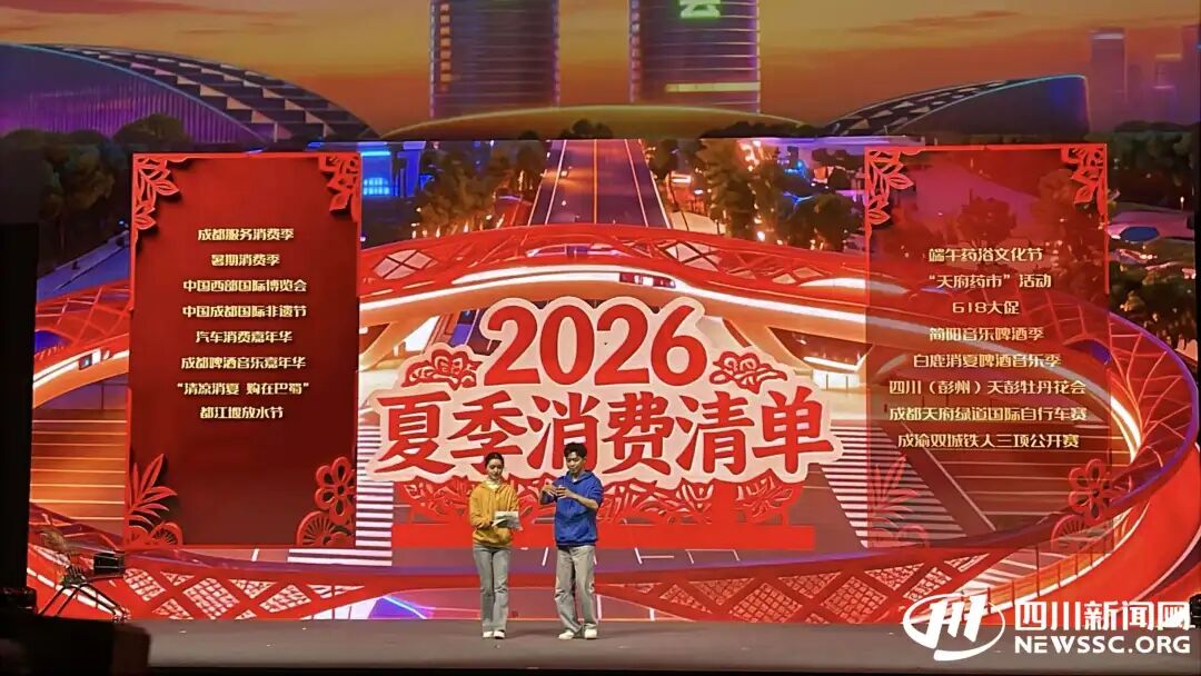 从春日的“村糖会”、夏日的非遗节、秋日的国际车展到冬日的熊猫灯会……启动活动上,一张覆盖全年的文商旅体消费的“2026成都四季消费清单”与一幅囊括成都全市特色消费地标的“成都年味消费全景图”同步亮相,点亮全年消费“风向标”,激发市场的无限活力。
