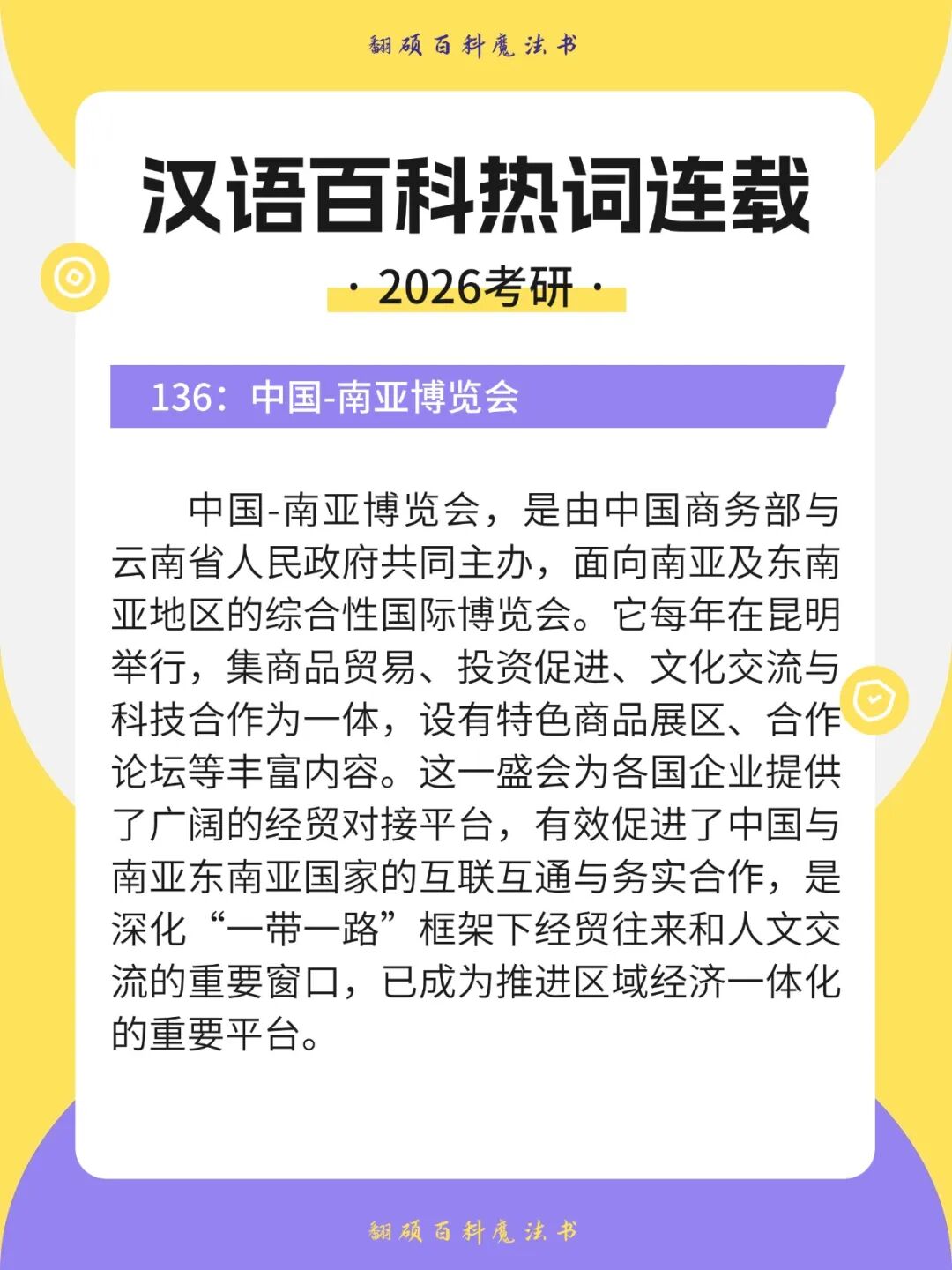 为了帮大家在冲刺阶段实现热点知识的系统化整合,我们正在打磨《2026翻硕百科热点汇编》。这份资料将作为考前最后的礼物,为大家收录更多核心热词和其他独家补充内容,帮助你将零散的积累形成完整闭环。