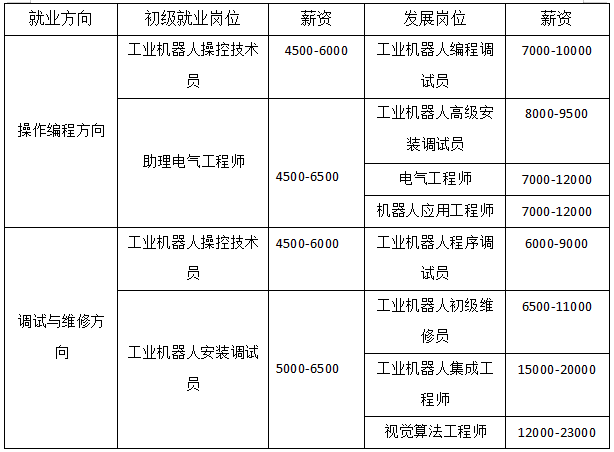 工业机器人领域80%的就业者初期薪资超过5000元,薪资三年后可达15000元/月以上。