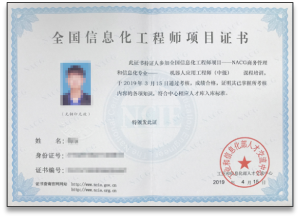 工业机器人应用编程1+X职业技能等级证书(初级、中级);电工IC卡(国家安全生产监督管理局);机器人助理工程师证书(工信部);PLC助理工程师证书(工信部)等职业资格证书。
