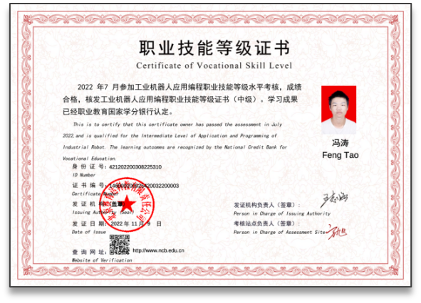 21级工业机器人四班 荣获2022年“中银杯”工业机器人技术应用赛项推荐组一等奖