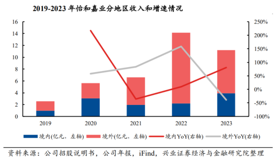 图8 2019-2023年怡和嘉业分地区收入和增速情况