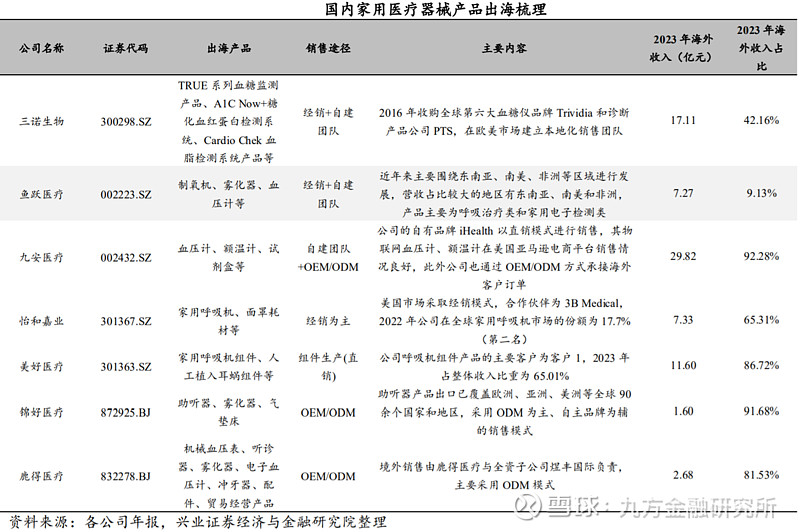图6 2023年国内家用医疗器械产品出海梳理图片来源:兴业证券经济与金融研究院