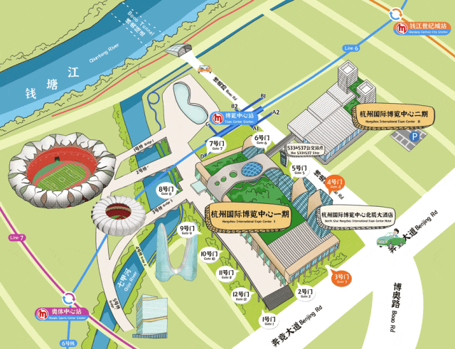 自驾的朋友们可以导航至“杭州国际博览中心”,从3号门进入地下停车场。乘坐网约车的朋友可以从2号门进入。