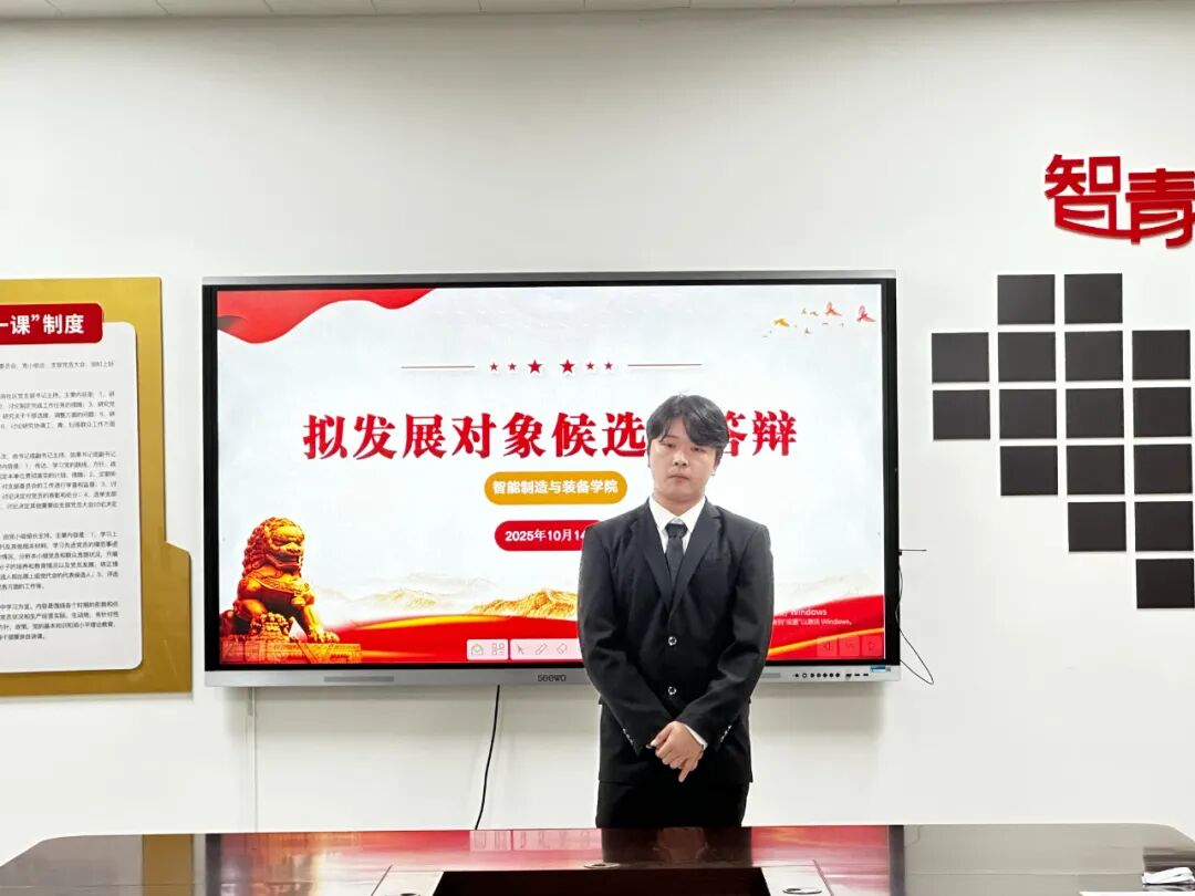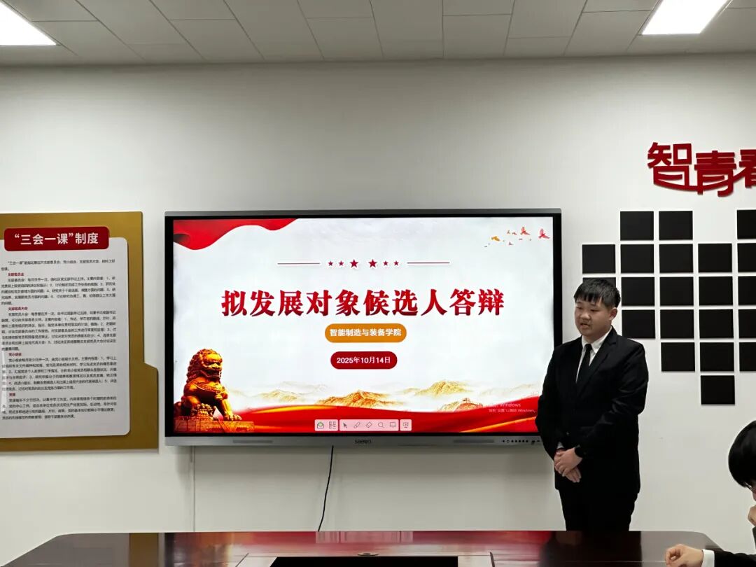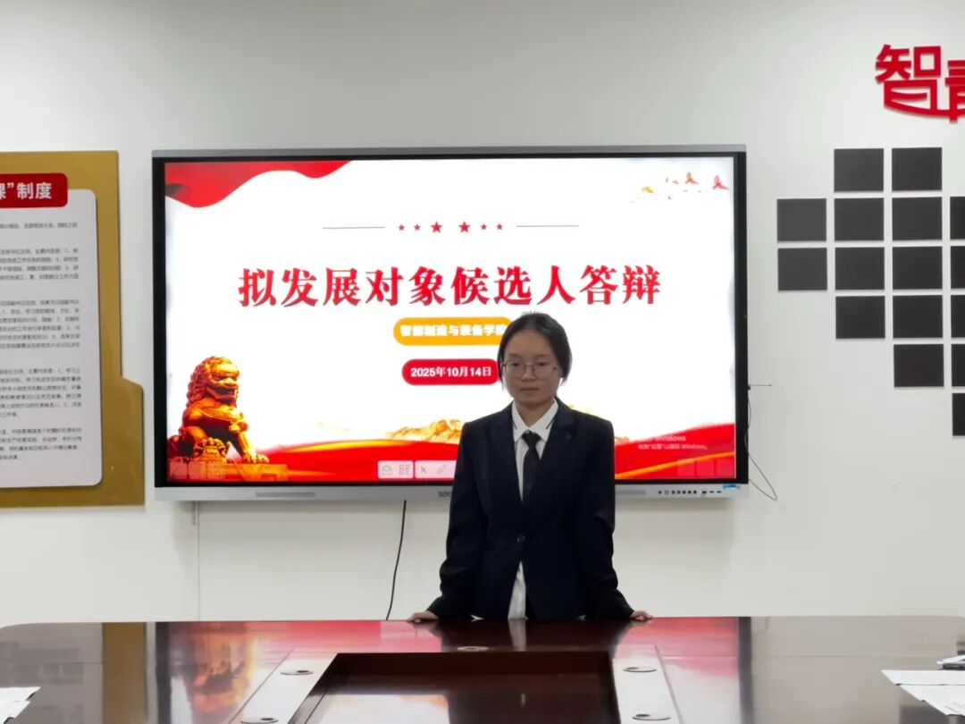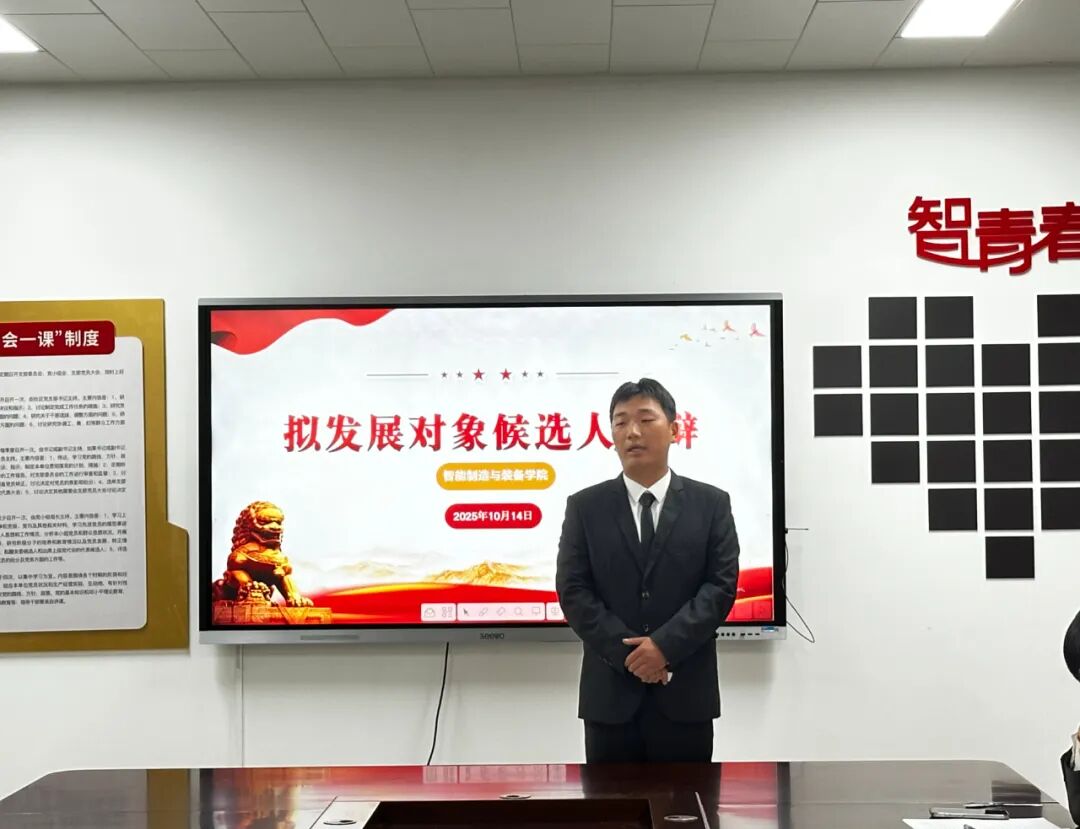 为筑牢党员发展对象的政治思想根基,严格党员发展 “入口关” 与 “质量关”,切实提升学生党员队伍的整体素质,2025 年 10 月 14 日,智能制造与装备学院学工党支部在学院A212会议室召开 2025 年下半年拟发展对象候选人推优答辩会。学院党总支学工支部党员出席答辩会。