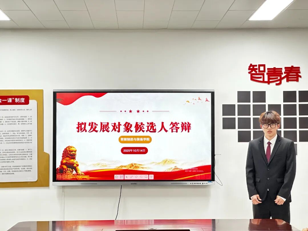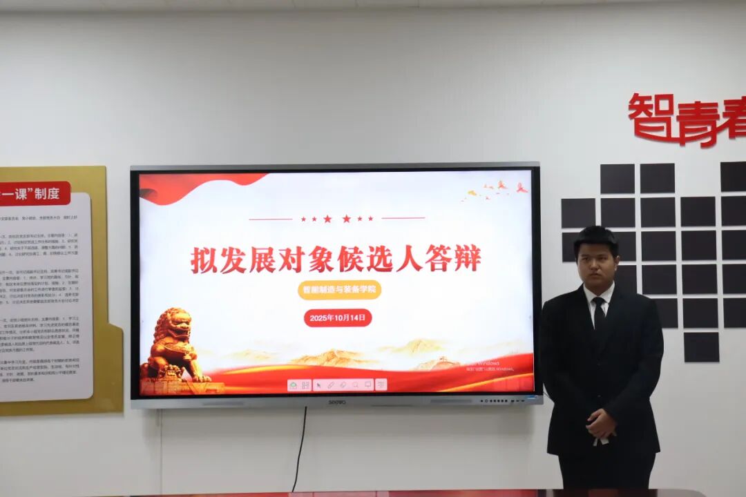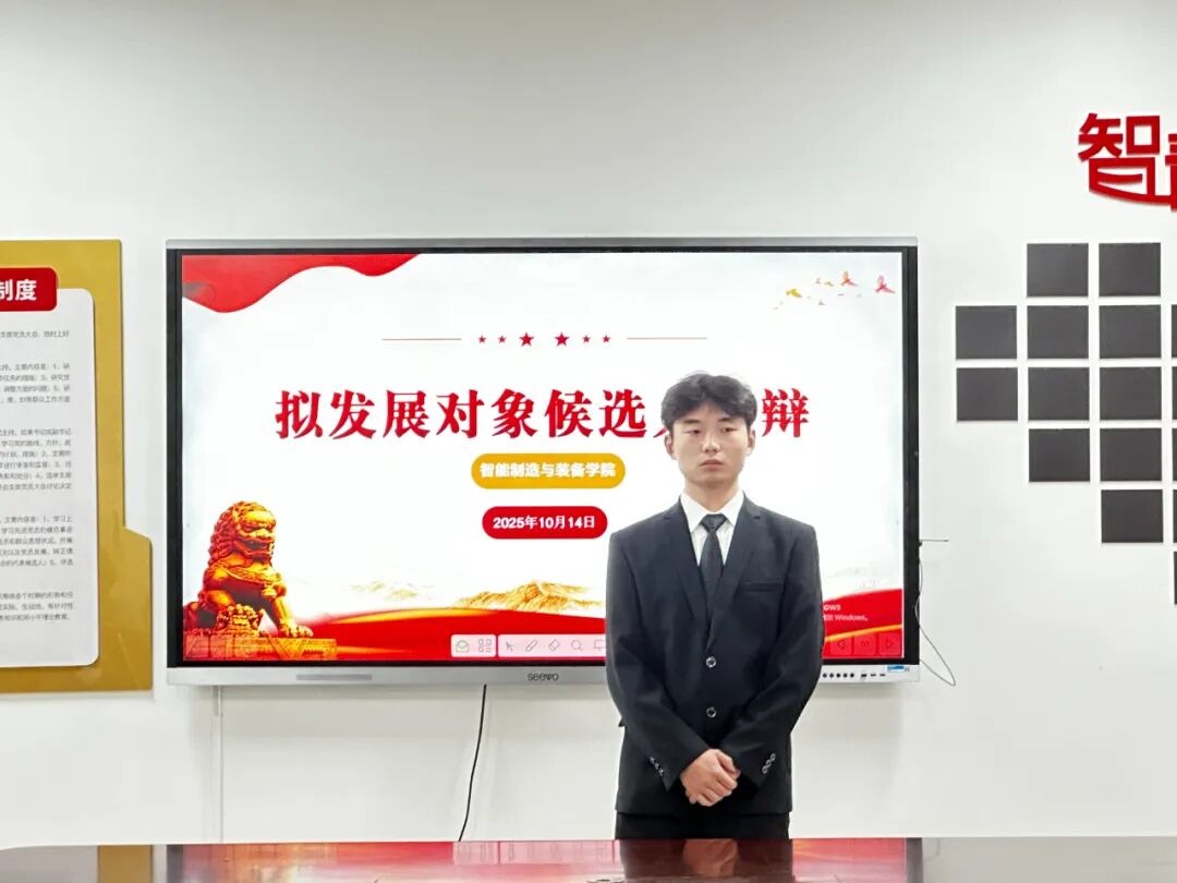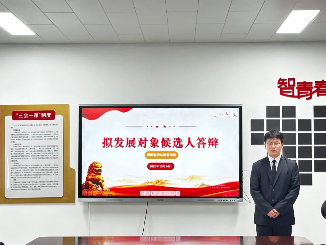 为筑牢党员发展对象的政治思想根基,严格党员发展 “入口关” 与 “质量关”,切实提升学生党员队伍的整体素质,2025 年 10 月 14 日,智能制造与装备学院学工党支部在学院A212会议室召开 2025 年下半年拟发展对象候选人推优答辩会。学院党总支学工支部党员出席答辩会。