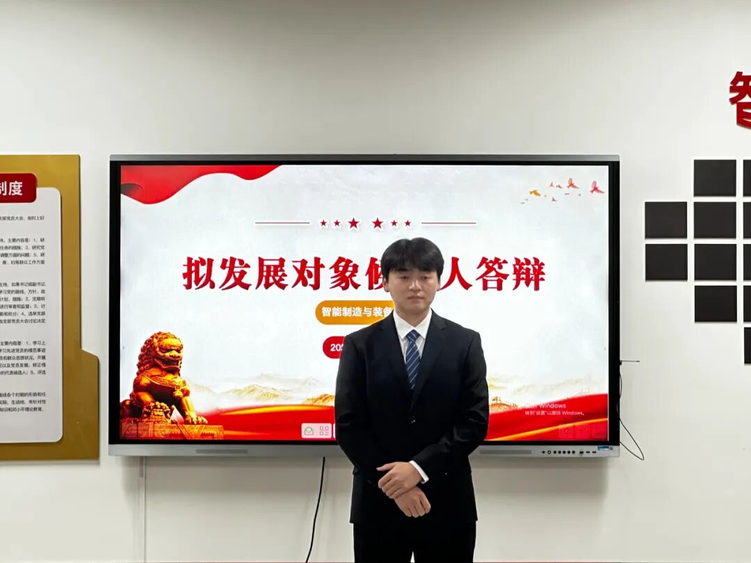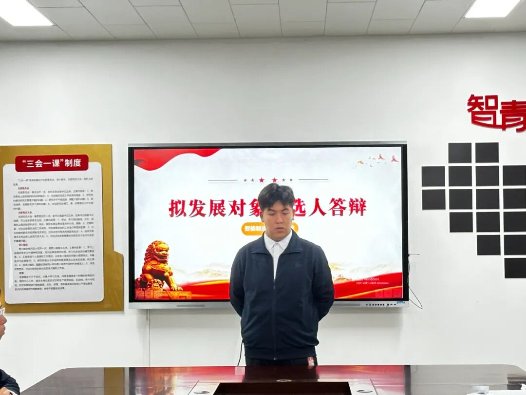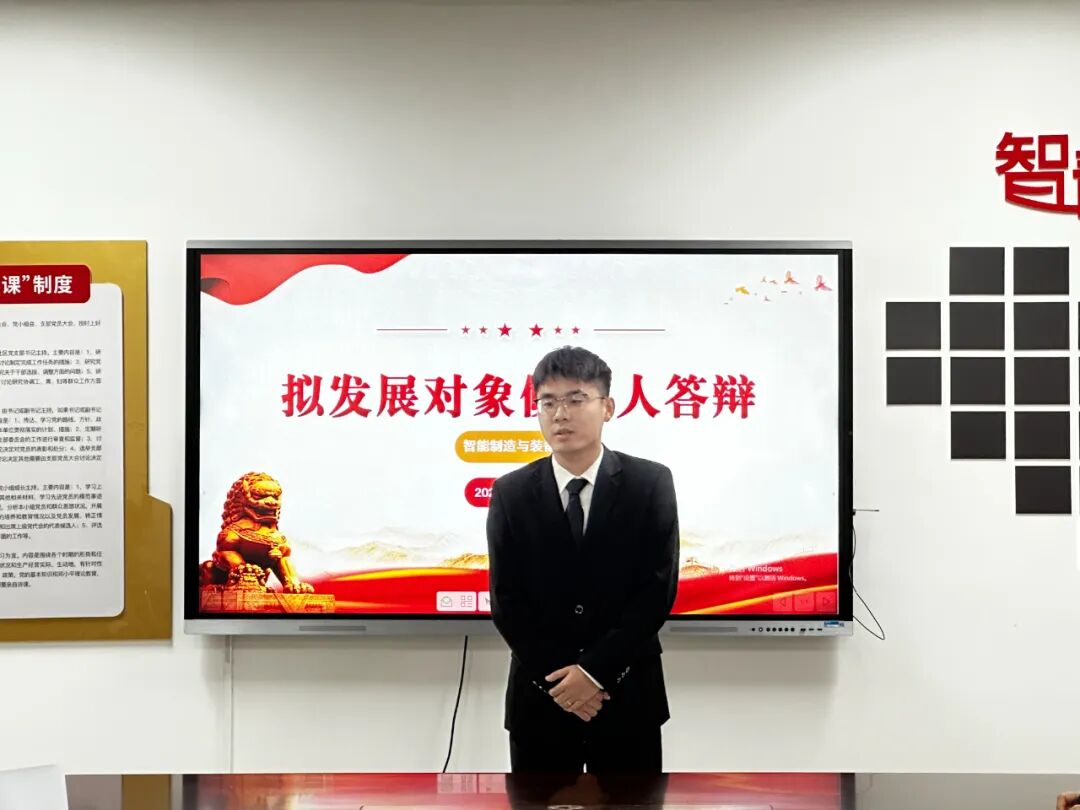 答辩过程中,拟发展对象候选人依次围绕题目核心展开作答,既准确回应理论要点,又结合自身实践分享感悟,充分体现了对党的宗旨的深刻理解与入党信念的坚定性,展现了智能制造与装备学院入党积极分子优秀的政治素养和突出的精神风貌。