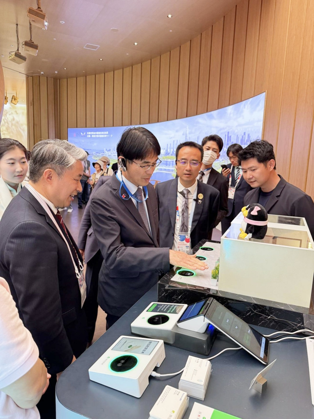 日本大阪世博会中国馆“深圳活动周”期间,观众体验刷掌支付新科技。