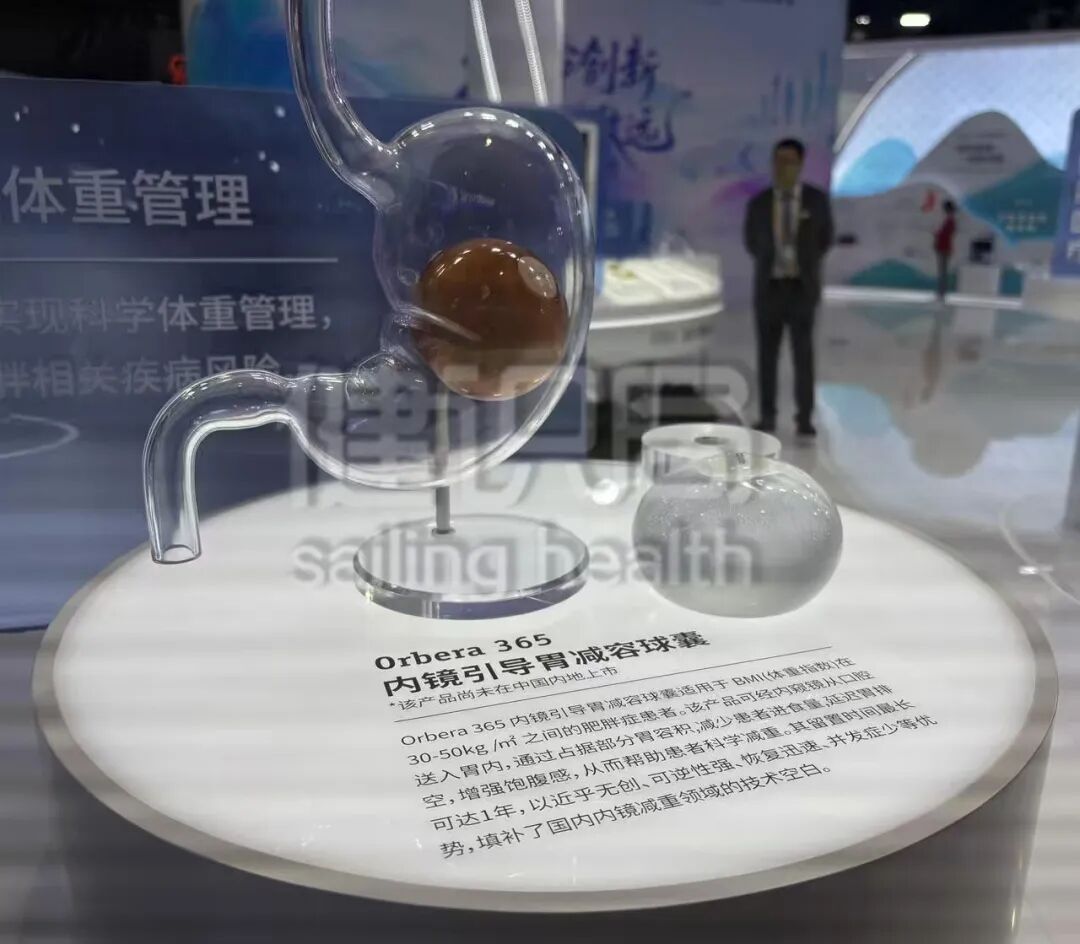 11月5日举办的2025第八届中国国际进口博览会上,波士顿科学展出了减重黑科技Orbera365内镜引导胃减容球囊系统。