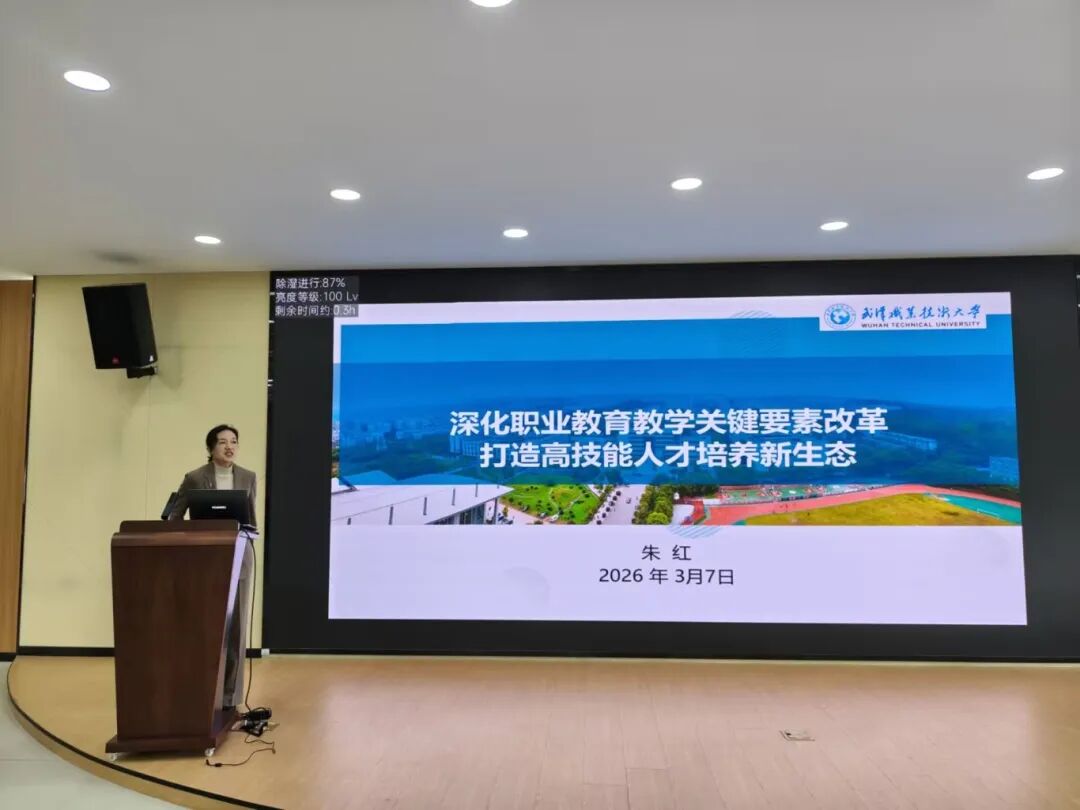 大会伊始,智能制造学院院长朱红围绕《教育部关于深化职业教育教学关键要素改革的意见》,结合学院专业特色与教学实际,进行了深入解读。他重点阐释了专业设置优化、课程体系建设、教材内容更新、教师能力提升等关键改革要求,强调要将职业教育改革理念深度融入教育教学全过程,切实把政策红利转化为学院发展实效,助力培养更多大国工匠、能工巧匠和高素质高技能人才。
