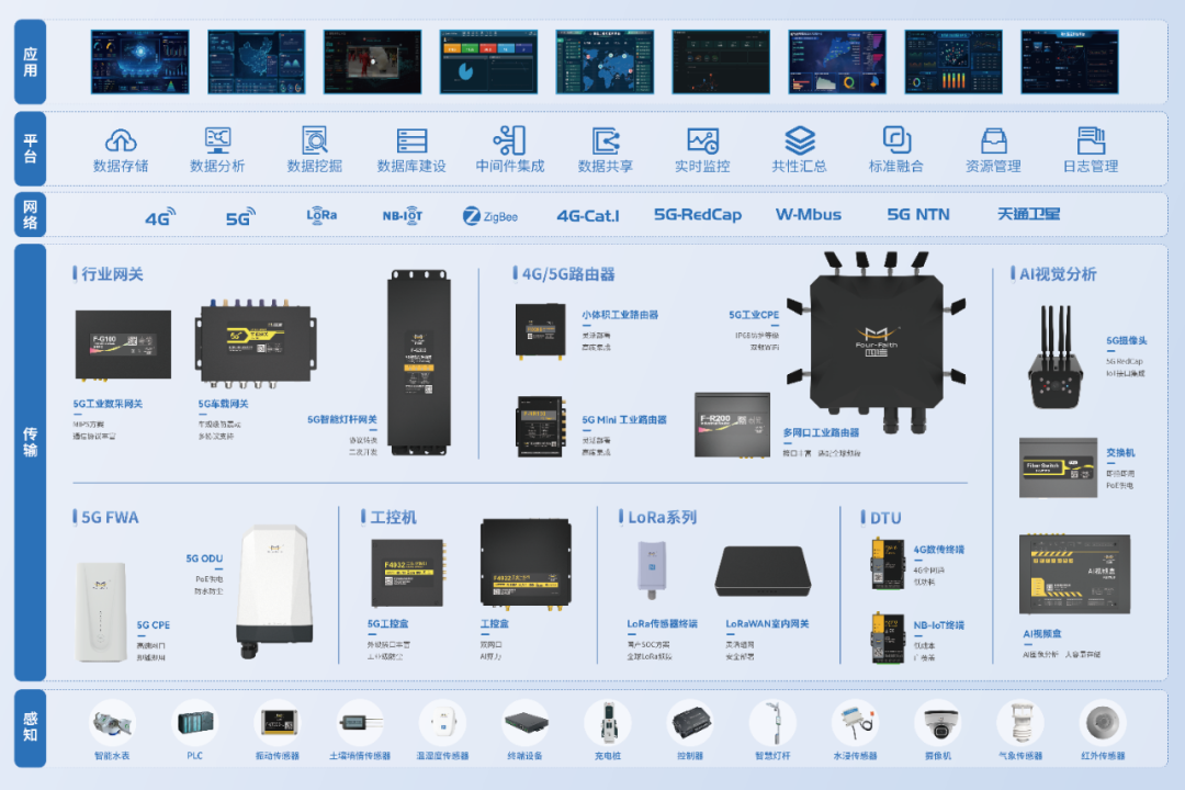 在网络连接层,四信5G产品系列展现出卓越的工业级性能。5G双卡双模工业路由器FNR500 支持双5G SIM卡并行接入,搭载智能负载均衡机制与3GPP R16标准的网络切片技术,显著提升链路冗余与网络可靠性,满足工业自动化、远程控制等场景对高带宽、低时延的严苛需求。