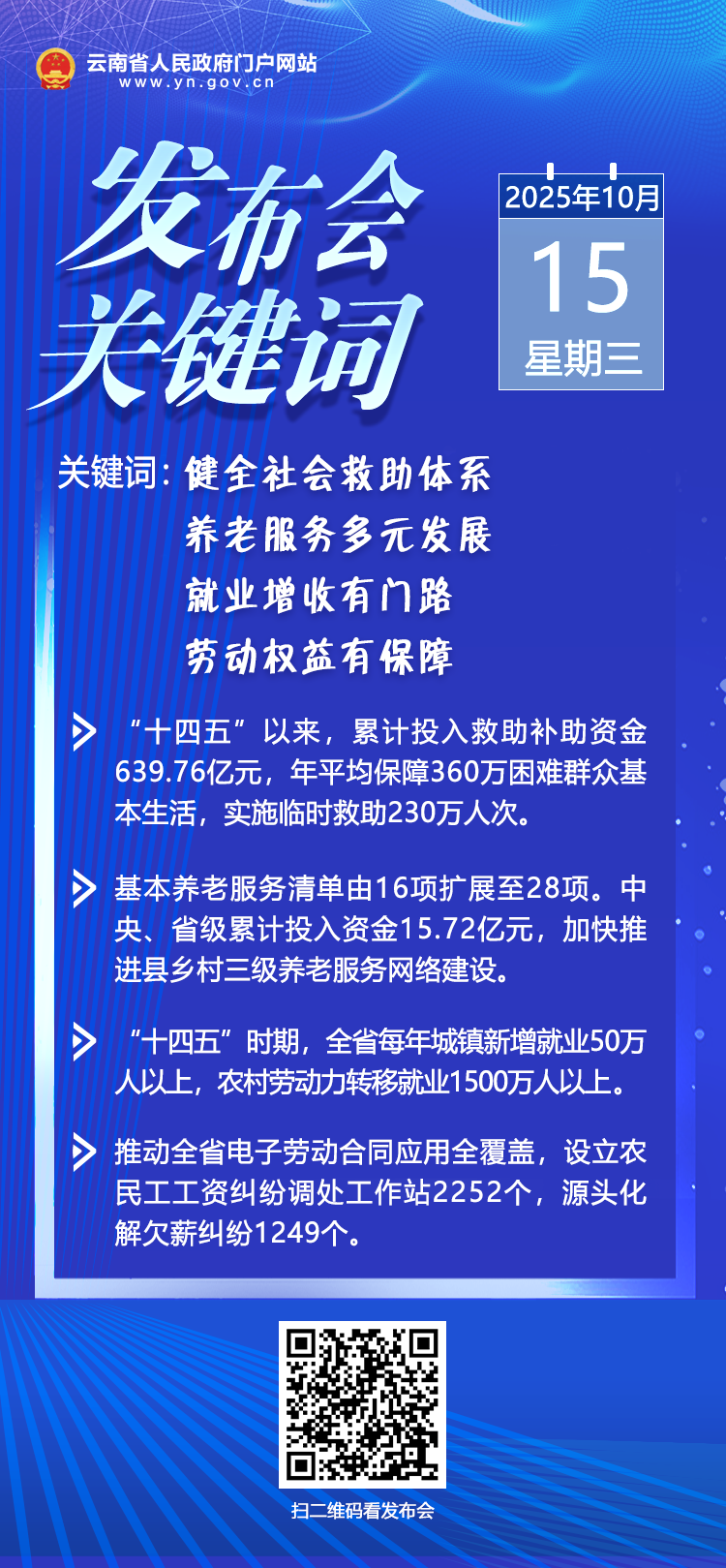 10月15日,云南省“高质量完成‘十四五’规划”系列主题新闻发布会·夯实民生基础增进民生福祉专场在海埂会堂召开,有关部门负责人介绍相关情况,并回答记者提问。