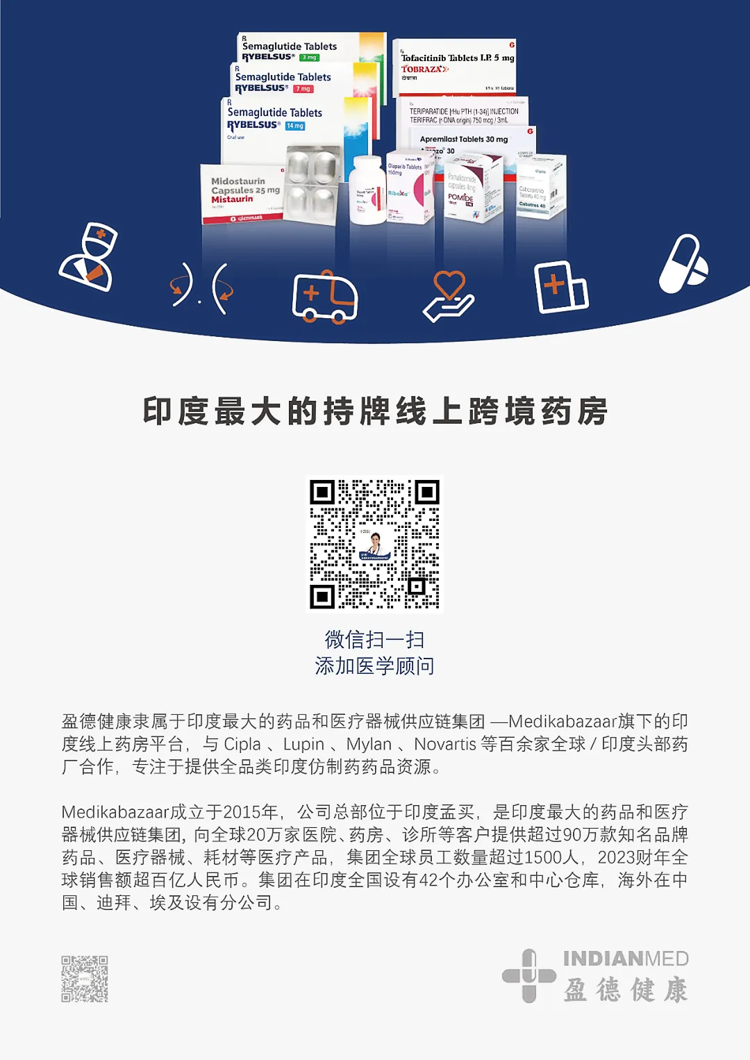 ▍跨境购买印度抗癌药,添加客服交流,获取更多信息(盈德健康是印度最大的持牌线上跨境药房)