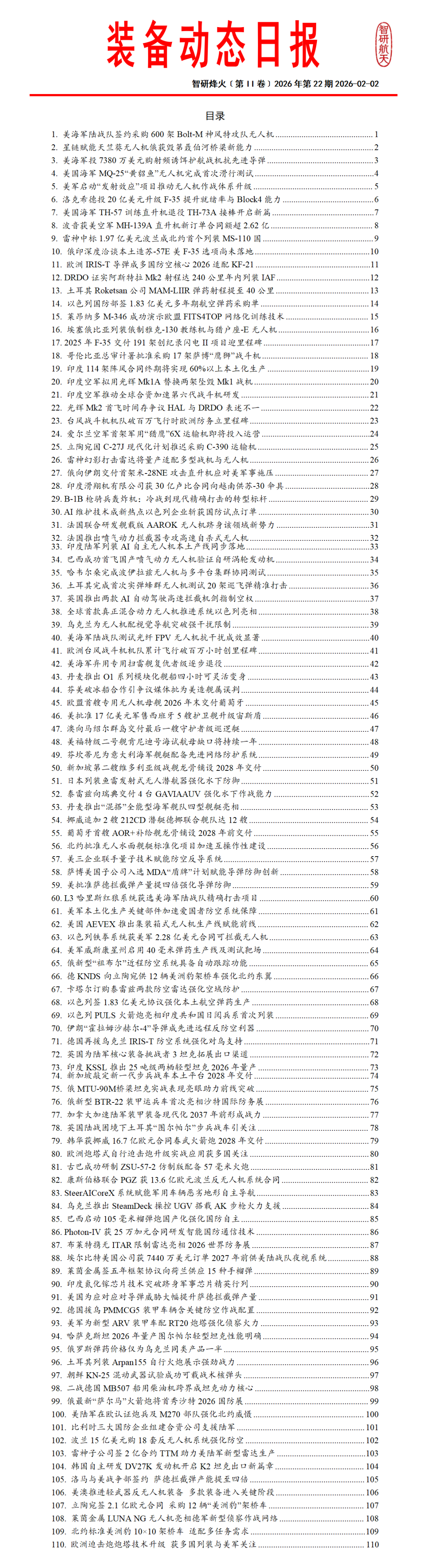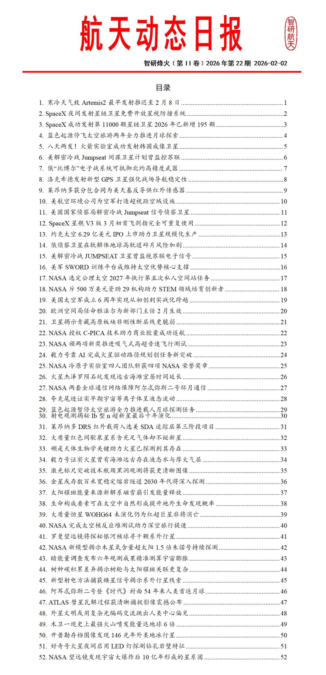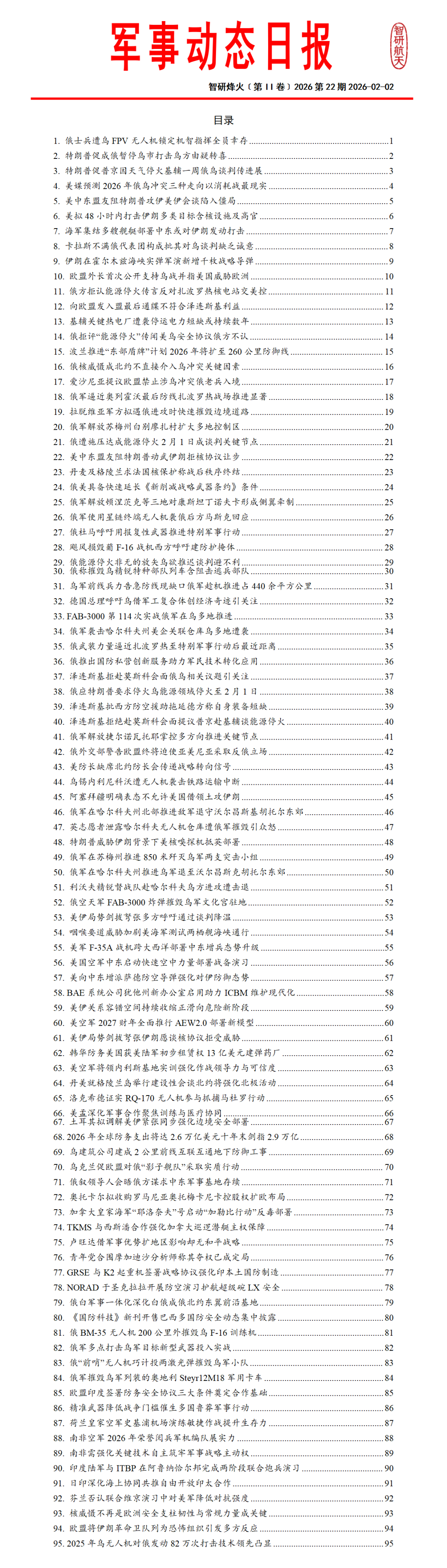 《全球防务动态》系列专刊国内独家每日发布涵盖航天领域、武器装备、军事热点、人工智能、先进制造等领域的全球动态信息。提供“航天动态专报”、“装备动态专报”、“军事动态专报”、“智造动态专报”以及“航天防务新闻日报”等特色产品模块。工作日每日推送,形成结构化、可编辑的文档,供订阅用户在小程序“智研烽火信息”商城下载。每日及时的动态信息能够有力支持各单位进行要讯报送、军情研究与安全形势分析的需求。