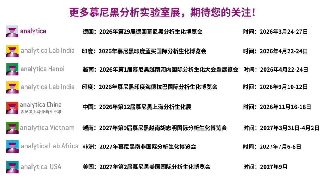 领先的贸易展览会和市场-全球analytica网络。我们的全球网络还包括在慕尼黑analytica的主展, 以及在中国, 印度和越南的行业领先展会。