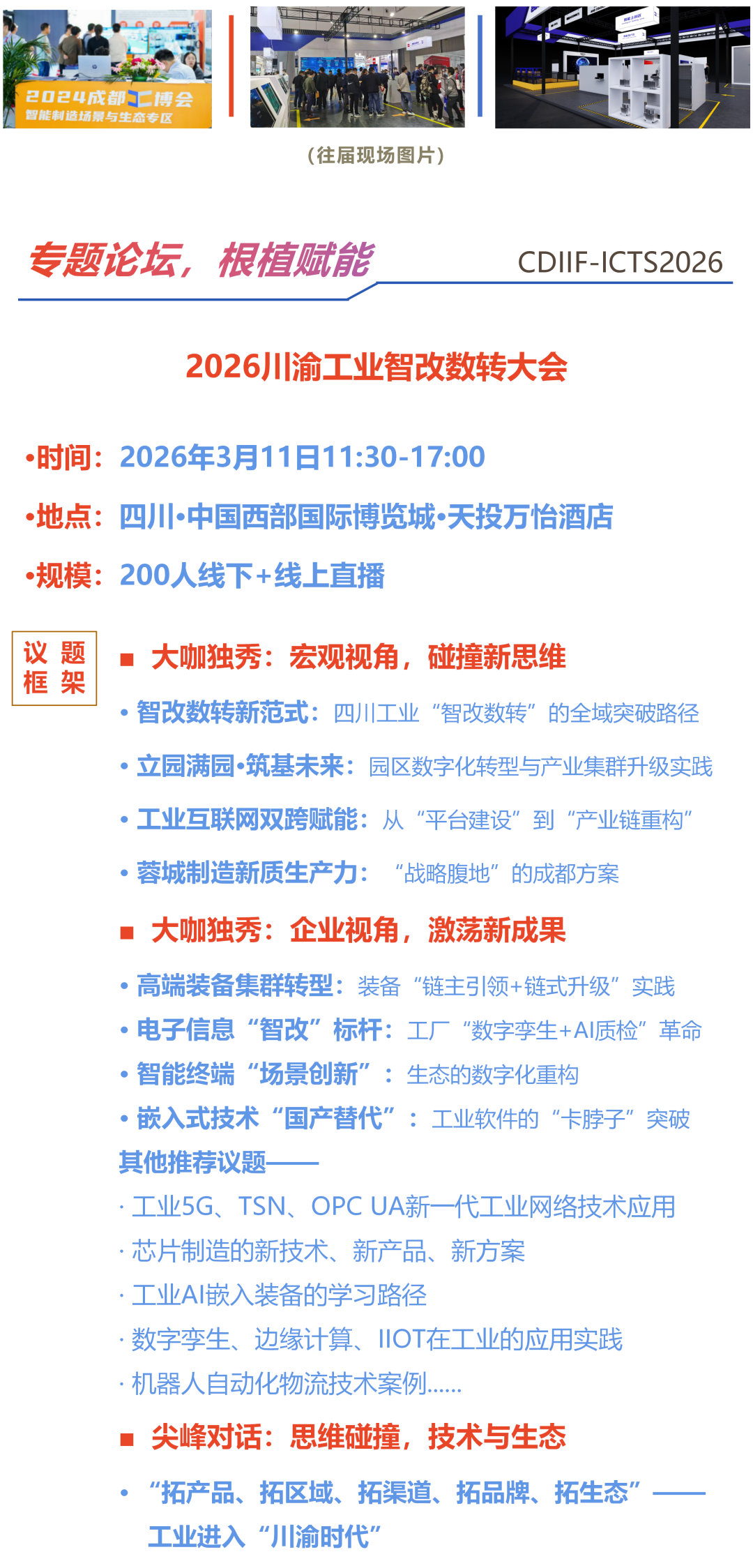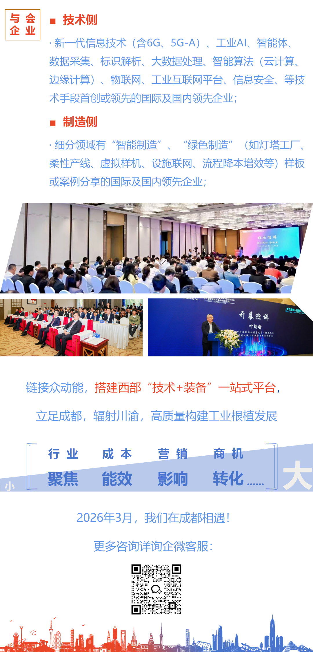 [ 编者按 ] 协会理事单位上海工业商务展览有限公司主办的2026成都国际工业博览会将于2026年3月11日-13日在中国西部国际博览城举办!欢迎感兴趣的企业伙伴积极报名参观参展,联系人:周老师 13917923639