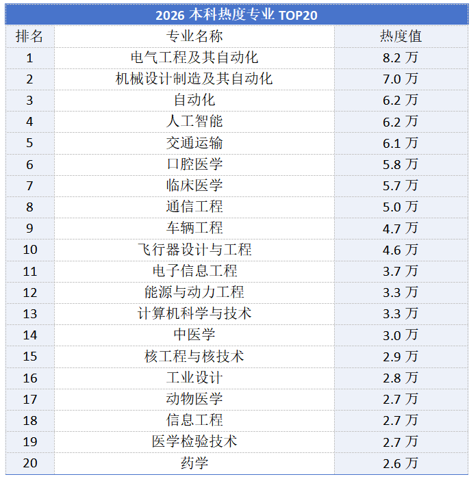 2026年的专业热度榜,为我们揭示了一个清晰的趋势:“求稳”是底色,“硬科技”是方向,“复合型”是王道。