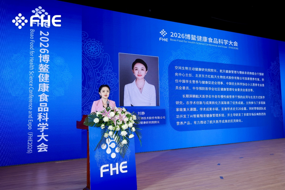 2026博鳌健康食品科学大会暨博览会(FHE2026)日前在海南博鳌举行。北京东方红航天生物技术股份有限公司受邀出席本次盛会,空间生物主动健康研究院院长、公司首席营养专家刘静博士发表专题演讲,系统分享了空间生物技术与航天医学研究在健康食品领域的转化应用成果,全方位展示了从尖端科技到大众健康服务的航天技术转化路径。