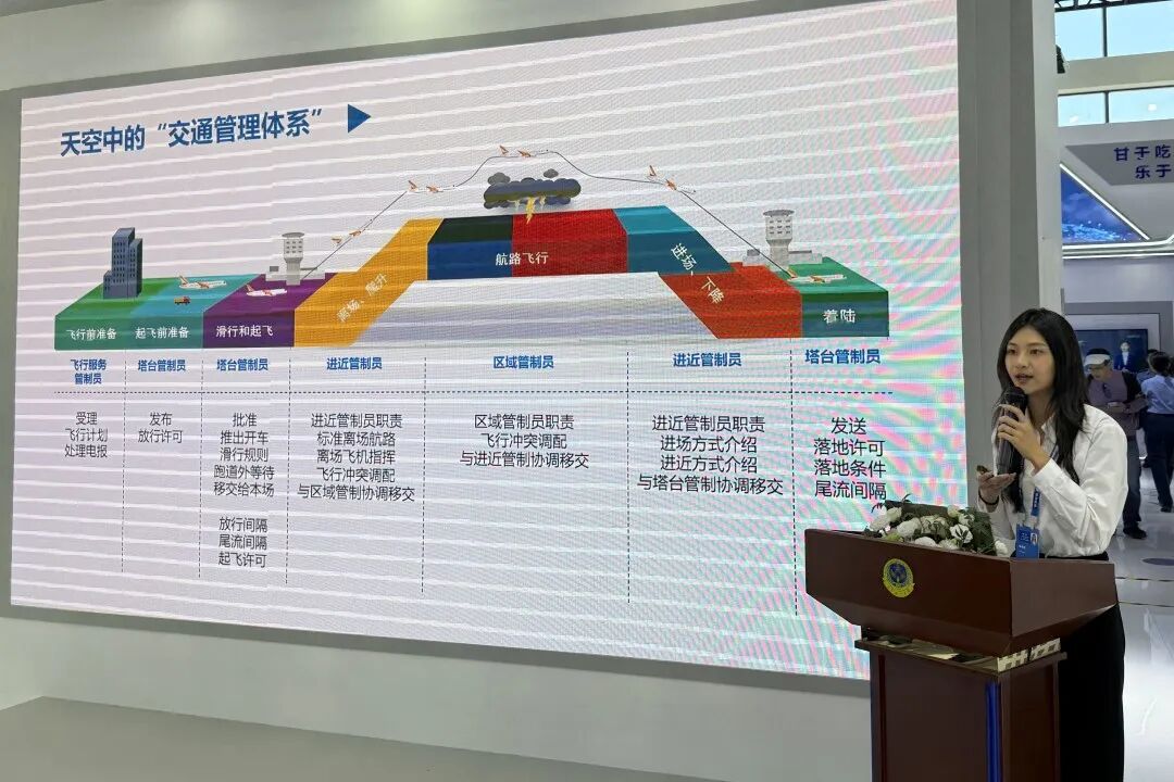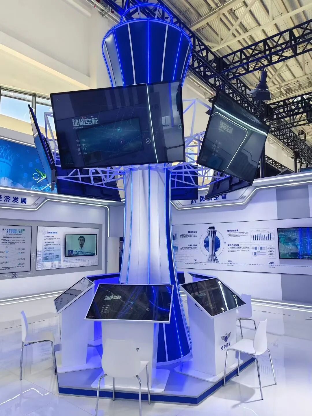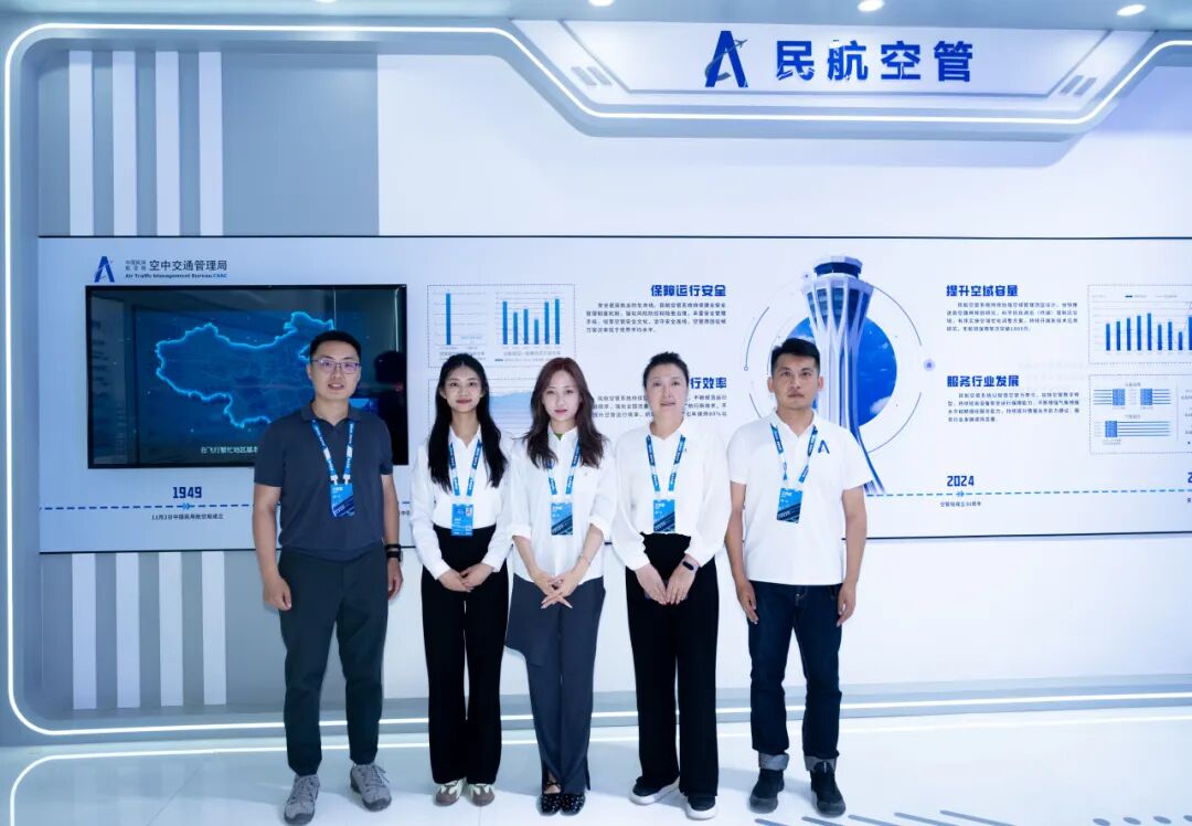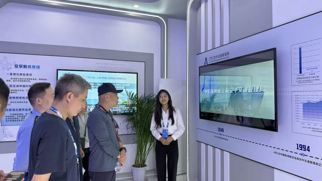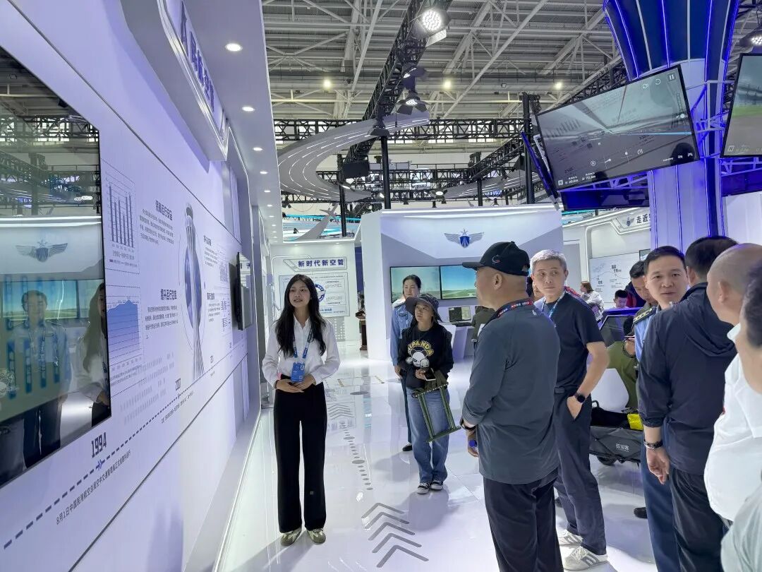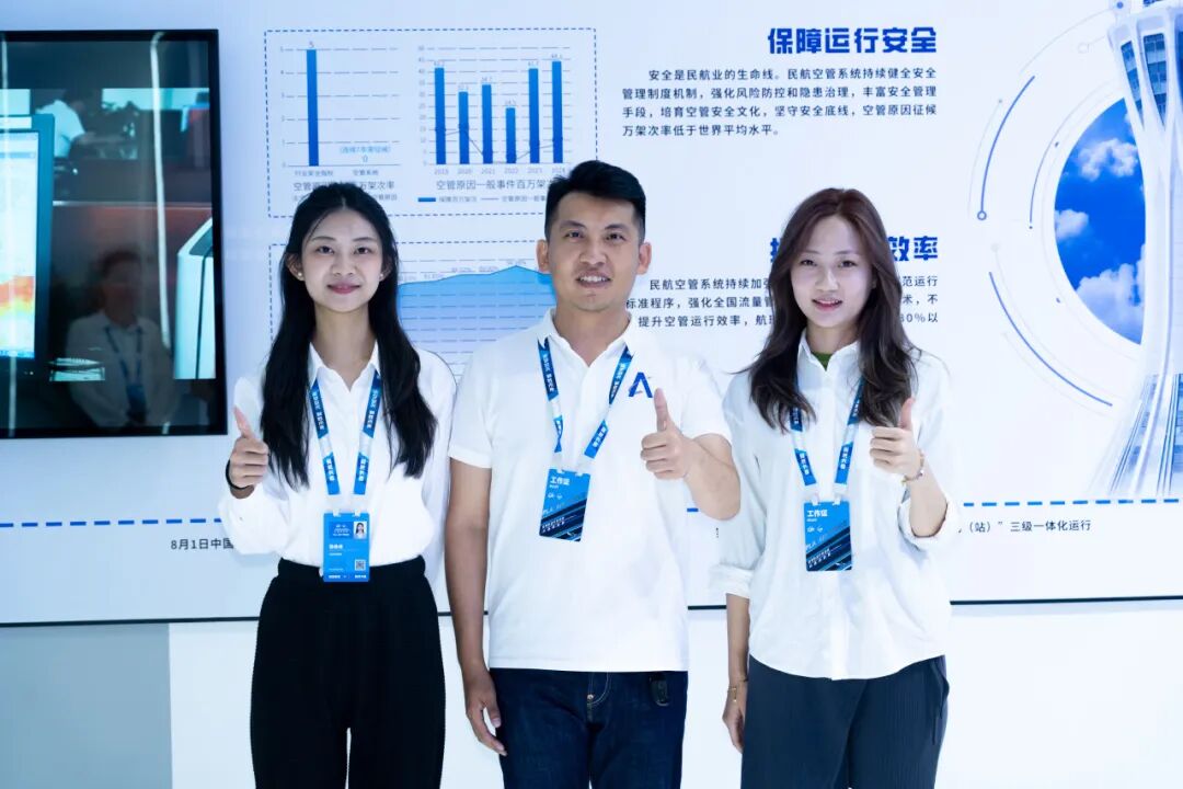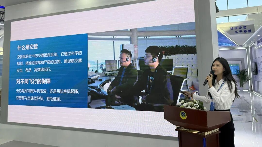 在长春航展管制指挥室内,进近管制员作为联络员,协调空域资源;在长春航展活动现场,空管青年化身志愿者,为观众提供引导和帮助;在中国空管展区内,每天定时为观众介绍空管知识;在空管科普展区的“我是迷你管制员”互动体验项目中带领观众一起沉浸式体验管制员的工作。AI拍照打卡区更是排起了“长龙”,游客们争相与虚拟空管场景合影,瞬间“穿越”到塔台等不同管制场景中。